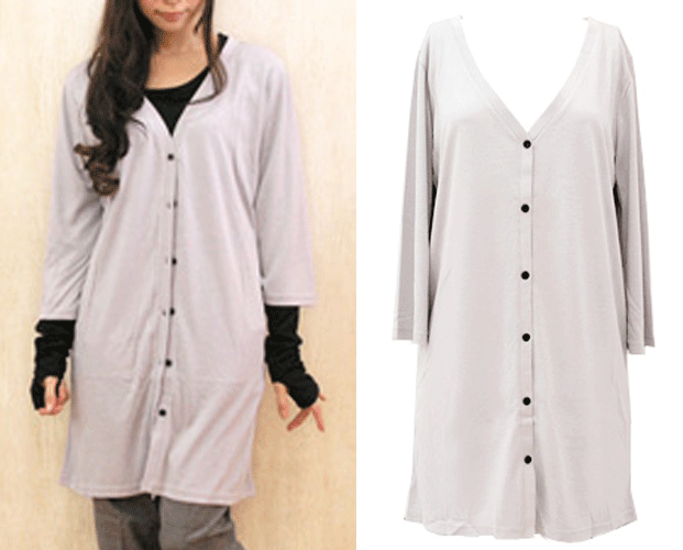【新品・Mサイズ】 後ろ飾りボタン付き7分袖カーディガン(ライトグレー) | |||