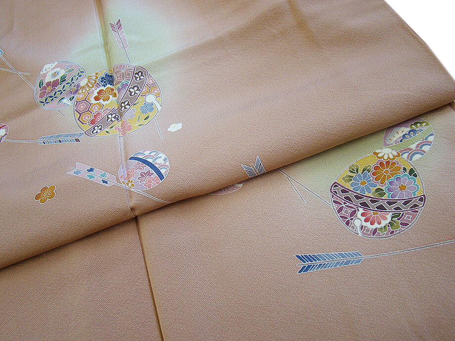 商品説明 | こちらのお品は「袷」ですので10月から5月までお召頂ければと思います。 とてもしなやかで柔らかな手触りの着心地良い重めの上質な極上一越地の生地、 薄い赤白橡色地に手毬に花、矢絣柄の染柄、 気品に満ち溢れた彩りが正統派のお着物として一枚は欲しい逸品の素敵なお着物です。 八掛は青朽葉色(正絹)、幅広い年代の方にお召頂けます。 |