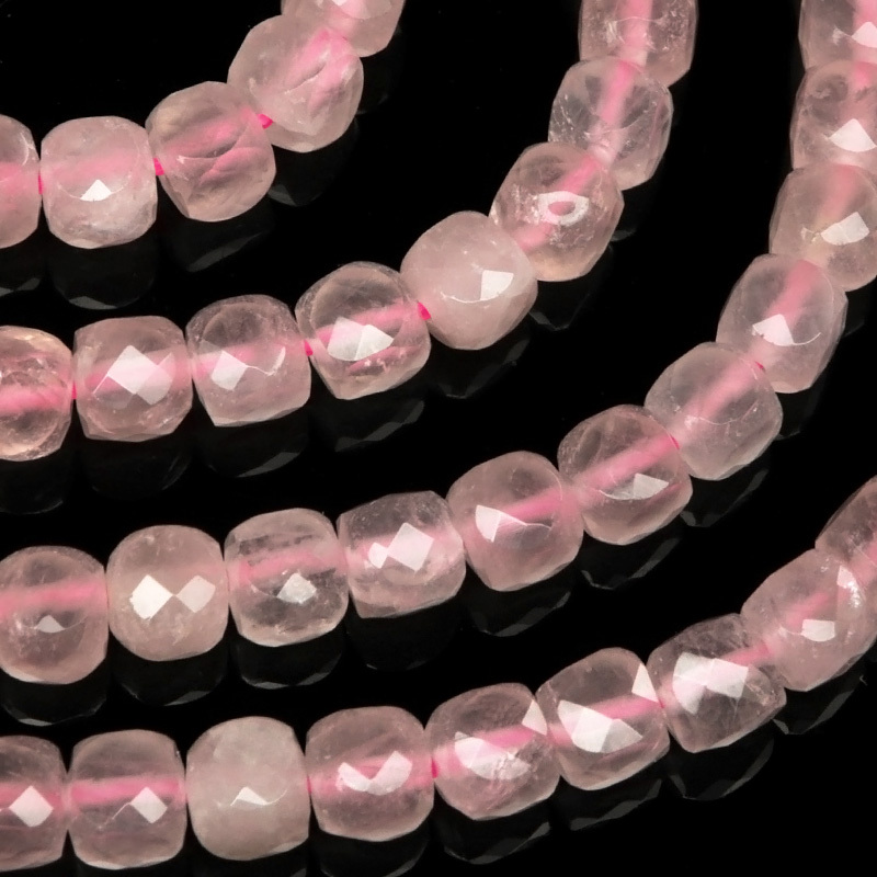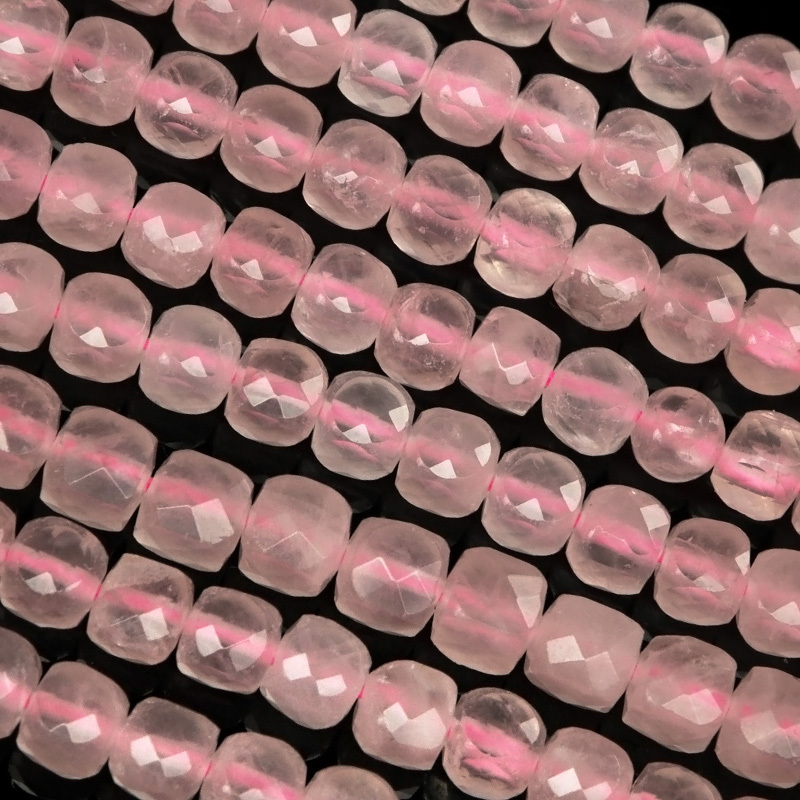 淡いピンクが可愛らしい愛と癒しのローズクォーツのキューブカット[プレミアムカット]です。
