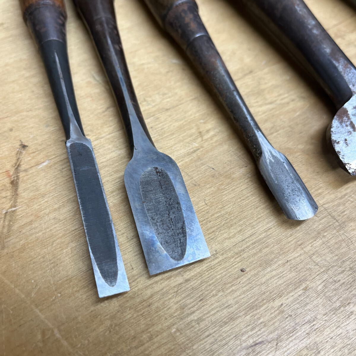 鑿、ジャンク品7本になります。視認できた物ですと菊弘丸、清弘の物があります。その他は全体的な状態と合わせて画像にてご確認いただければと思います。返品、クレーム等には対応できかねますのでご了承ください。それではよろしくお願いいたします。