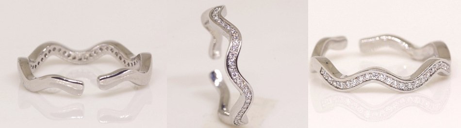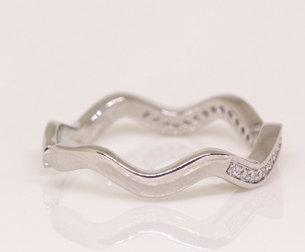 18K 指輪 RGP プラチナ ダイヤ CZ 波模様 ハーフエタニティ リング yu1168e |