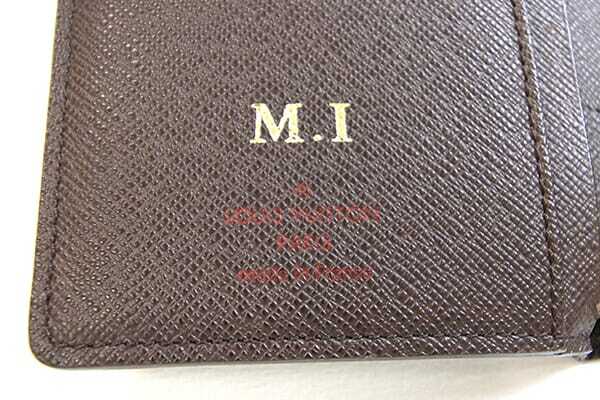 | 状態 | 外側:フチ周りに反りあり。フチ(コバ)にスレ・すり減り・ひび割れあり。 内側:カード入れのフチに微細なスレ、小銭入れに薄汚れあり。札入れに薄スレ、上部に革寄りあり。 金具:小キズ、スレ、クスミ、ボタンに色落ちあり。 ※イニシャル刻印「M.I」あり |