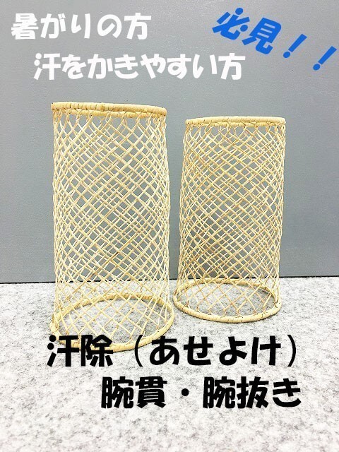 焼けありの為在庫処分セール価格となります。| 【大特価!】 市場に出回っている30目より網目が少ない24目の籐で編んだ 汗除腕貫(あせよけうでぬき)です。 24目短形は柔らかく、長さが短いため、女性にもおすすめいたします。 ※お持ちのお衣の袖口等のサイズと合うかご確認の上ご注文ください。 | |