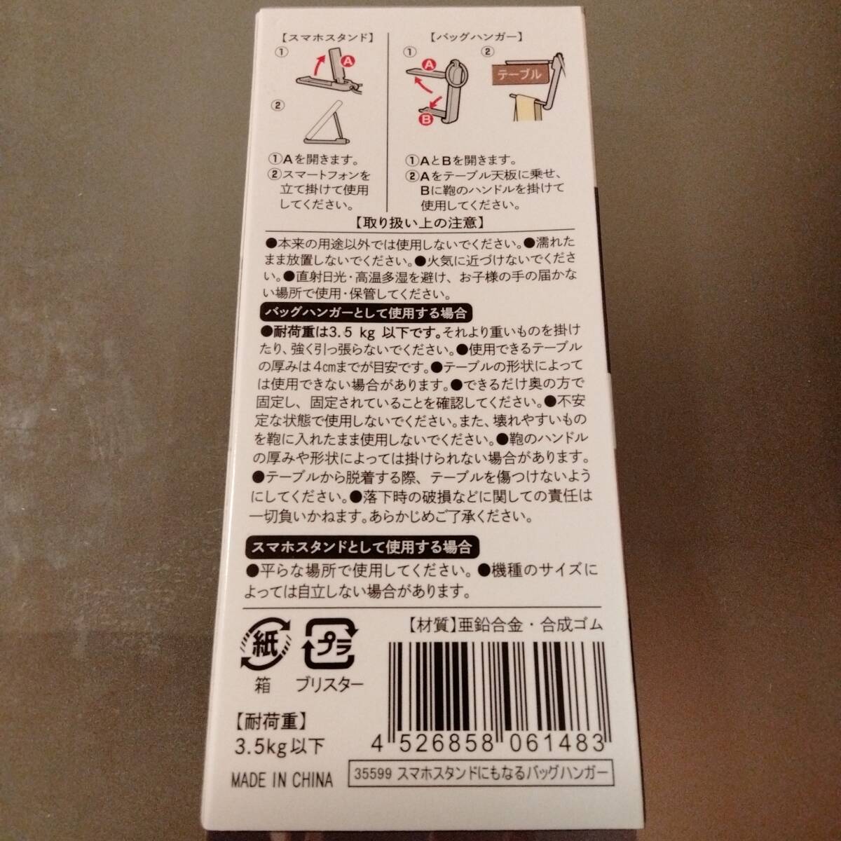 スマホスタンドにもなるバッグハンガー| 出价者 | 信用 | 价格 | 时间 |