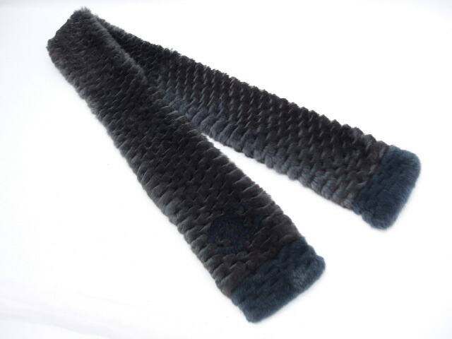 商品名 | オリラグマフラー ココマーク オリラグファー カシミヤ混 チャコールグレーxネイビー(紺) グレーxブルー レディース |