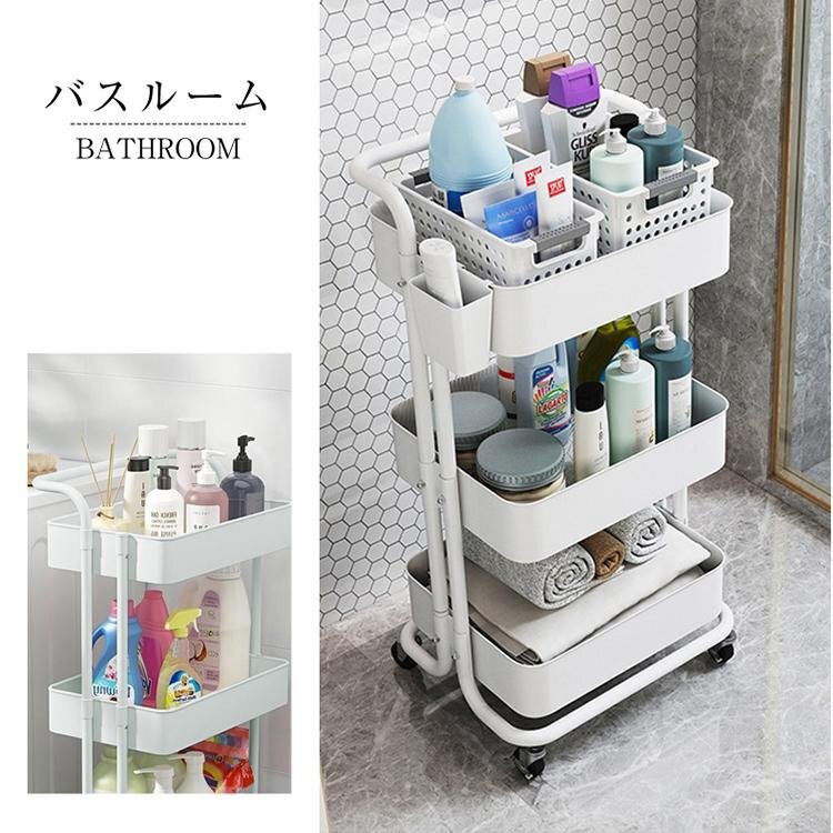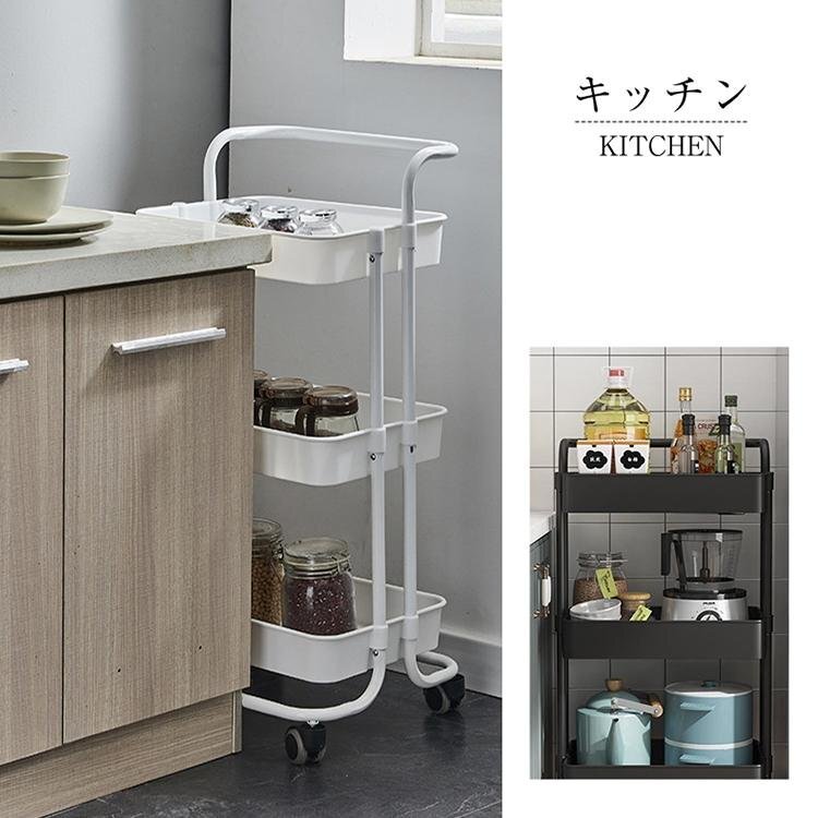 キッチンワゴン キッチン収納 キャスター付き 3段 2段 収納 隙間 ラック バスケットトローリー ワゴン ハンドル付き キッチンカウンター インテリア カート 洗面所 多肉棚 一人暮らし おしゃれ 部屋 寝室