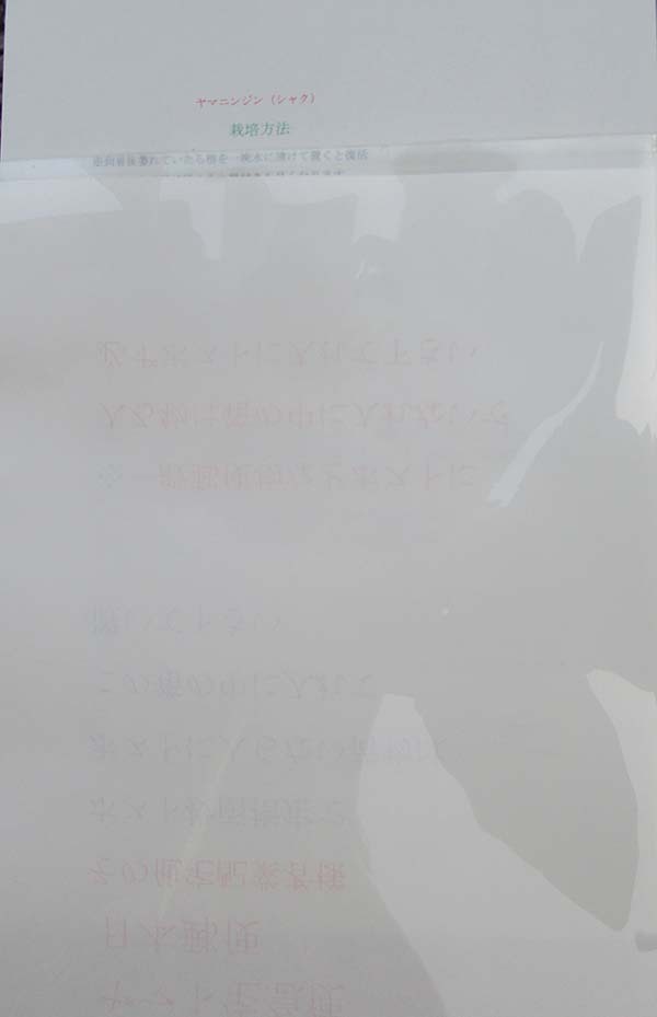 | 商品説明 | 別名 ヤマニンジン(シャク) 出品は5本のお値段です ※呼び名が地域により違う場合も有ります セリ科シャク属/多年草 ※山育ちの為 サイズや根の形に多少違いが有りますが、 サイズ等は勝手ながら当方で選ばせて頂きますので 了承の上での落札をお願いします、 ※さわやかな香りが特徴の香味山菜 葉が人参によく似ていることから、 山にんじんと呼ばれています 匂いが若干強く若干クセがありますが、 おひたしやサラダ、かきあげの天ぷら などに入れても美味しいです。 ※上記では説明不足の為ホームページ等で 検索すると、他に栽培法や色々の調理や利用方法が載っています 是非検索をして見て下さい、 ※発送時に、簡単調理法と栽培マニアルをお付けします、、 ※(現在生育中の為出品時の写真と発送時の 芽の伸びが異なる場合が有ります、写真にはイメージも含みます) |