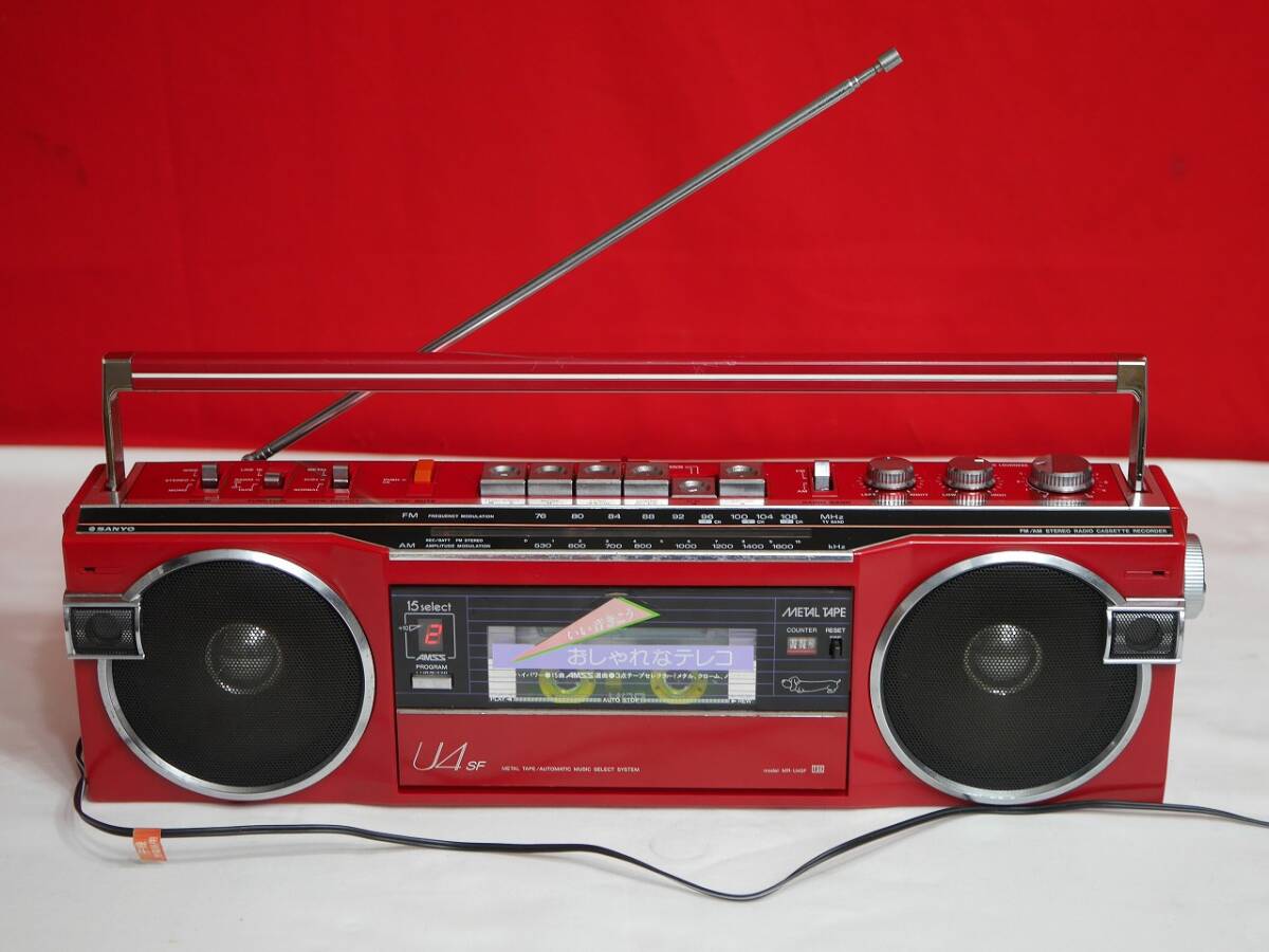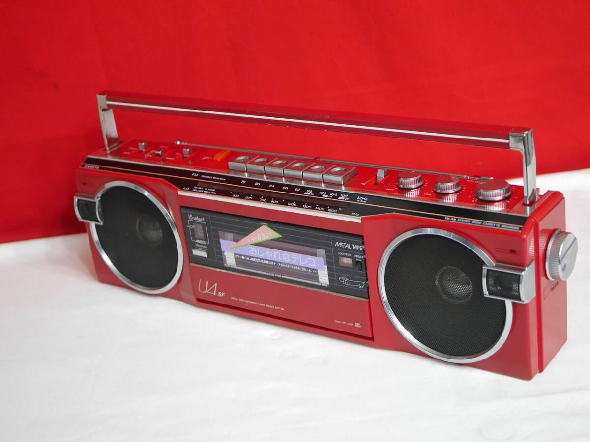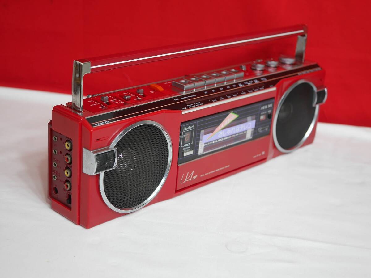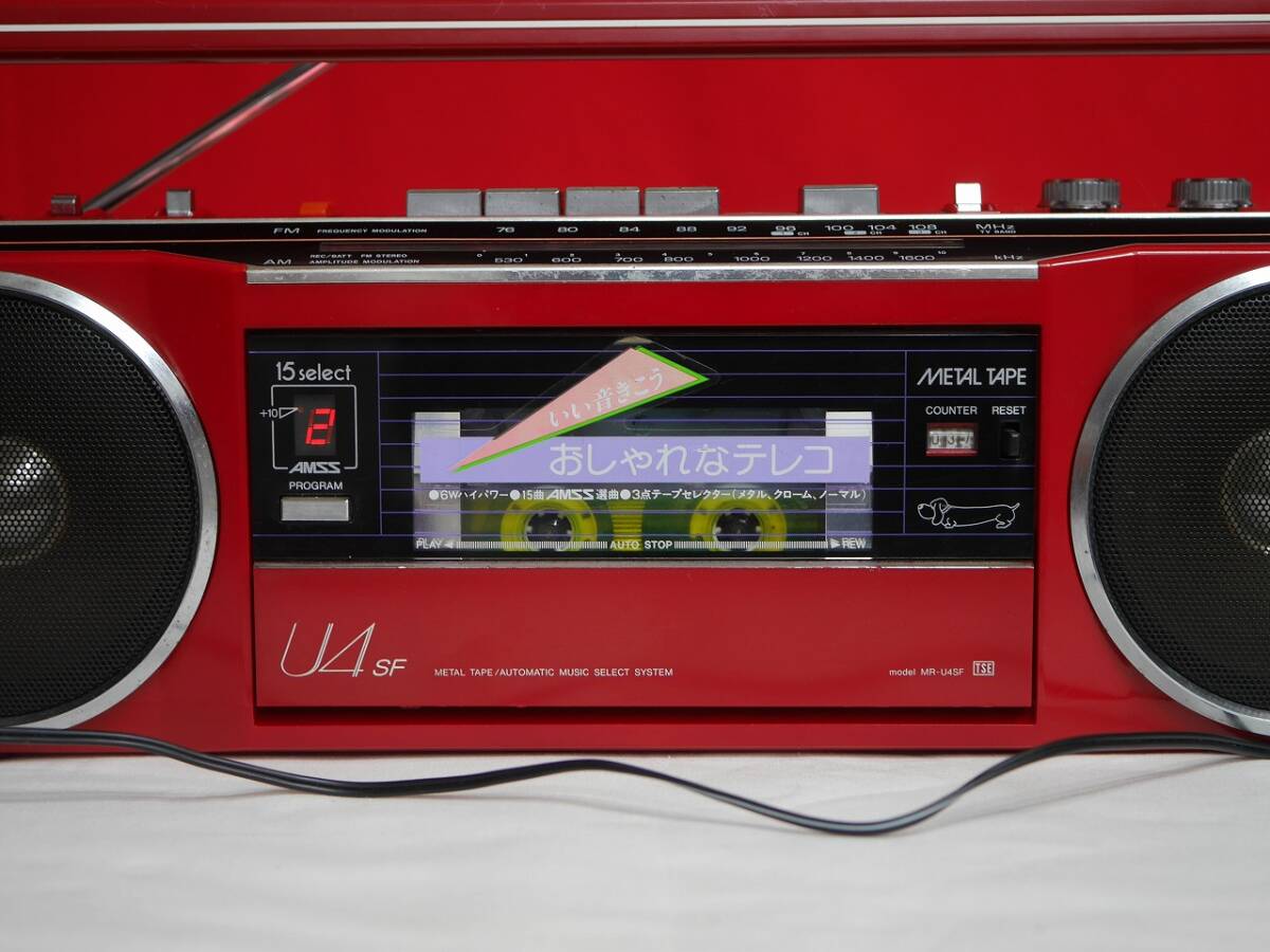 商品に興味をもっていただき、ありがとうございます。 以下お読みいただき、たくさんのご入札。お待ちしております…♪(^^)♪ **************************************************************** ■【商品説明】■ ■♪昭和レトロ SANYO 三洋電機 希少 MR-U4SF おしゃれな テレコ FM/AM ステレオ アンティーク ラジオカセットレコーダーです。 ■メーカー:三洋電機 SANYO ■モデル名:MR-U4SF ■発売年:1980年(昭和55年) ■当時の定価:\36,800円 ■外形寸法:W430 x H128 x D89mm ■重量:2.25kg ■お色:レッド ■日本製 MADE IN JAPAN **************************************************************** ■【商品状態】■ ■ACアダプター、電池共に通電動作確認済み。 ■カセット部分とテープとカウンター部分新品ゴムベルトに交換しております。 ■テープ再生、早送り、巻き戻し、一時停止、録音、音出し、動作確認済み。 ■ラジオFM/AM受信します。音出し、受信感度◎ ■REC/BATT、FMステレオランプ、バランス、トーン、動作確認済み。 ■ボリューム、チューニング、テープラジオ 切り替え、動作確認済み。 ■ロッドアンテナ折れなく真っ直ぐ伸びます。 ■商品の状態は画像でご確認宜しくお願い致します。 ■落札後直ぐに丁寧に梱包してヤマト運輸より発送いたします。 ■【付属品について】■ ■ラジオカセットレコーダー本体、SANYO製 ACアダプター、電池蓋です。 **************************************************************** |