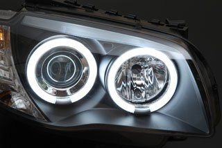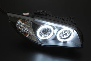 E87/81のフロントフェイスをアップグレード!!エンジェルアイ(リング付)ヘッドライトにブラックタイプが登場しました。リング部はLEDバルブを使用しており鮮やかに発光します。純正ヘッドライトのインナーもブラックなので、さり気なくイカリング化させたいというオーナーにオススメ!専用設計なので取付は純正品と交換するだけで簡単です。バルブやカプラーはそのままご使用いただけます