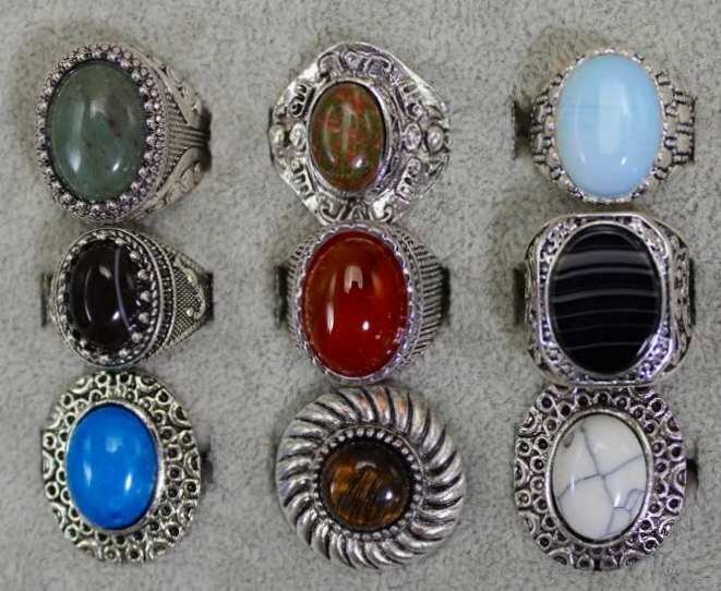 天然石 指輪 まとめて9点セット 全て天然石のファッションリング 9点セットです。 とても丁寧に研磨されており、艶、色味ともに非常に美しいものです。 写真がお譲りする商品の全てになります。 サイズ:約16~20mm=約10~22号 材質:メノウ オニキス タイガーアイ等の天然石 個数:9点 ※指輪9点のみがお譲りする商品です。 ケースは付属しておりません。 |