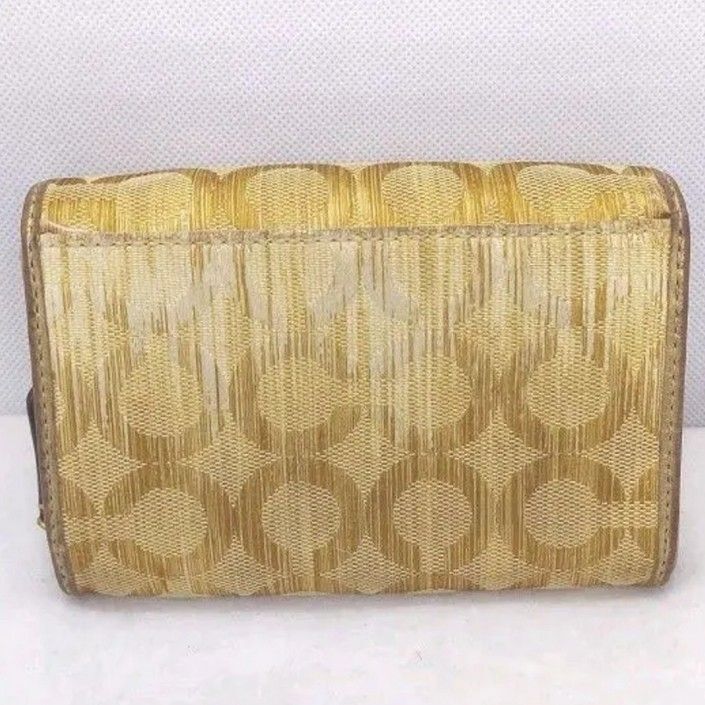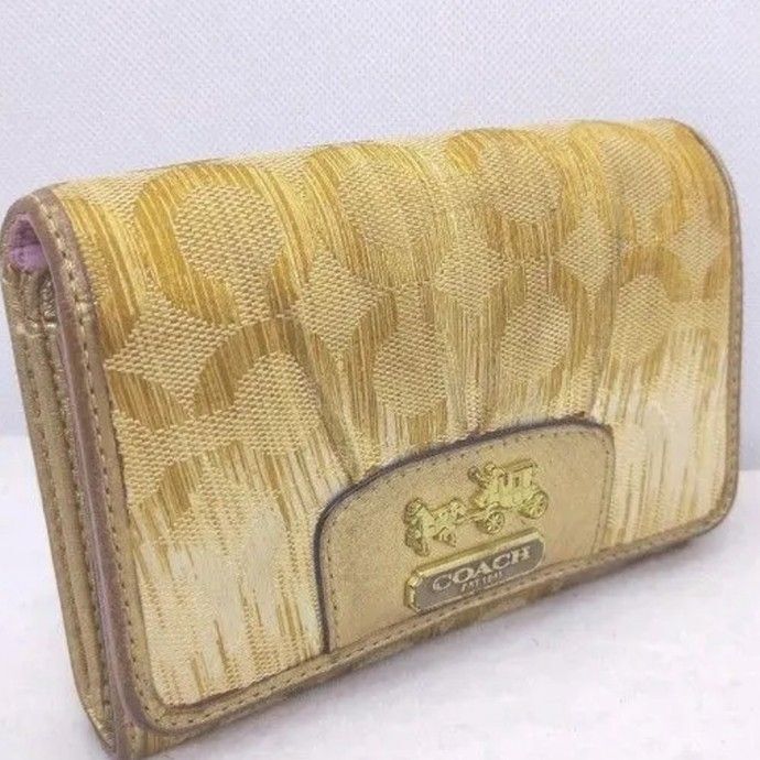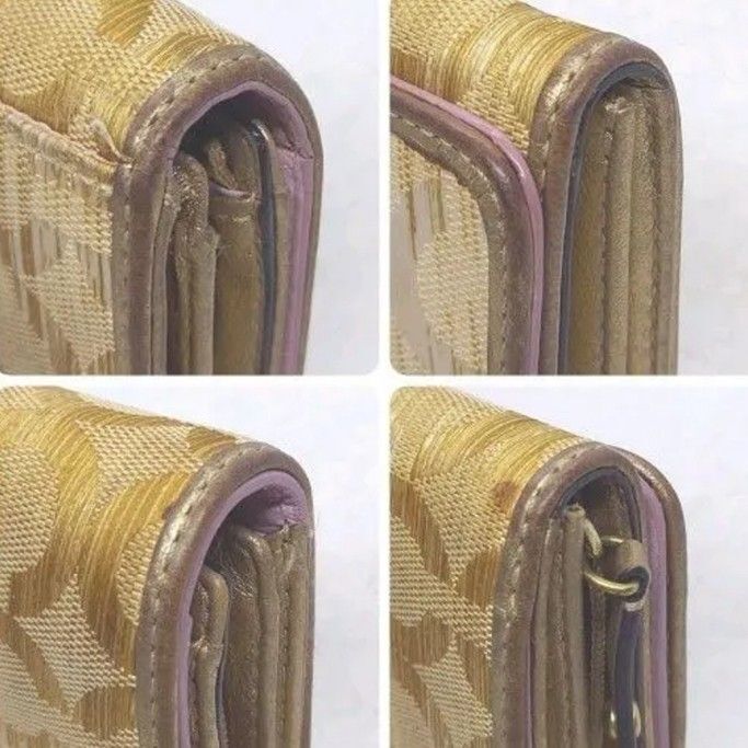 COACHのシグネチャー柄の二つ折り長財布です。ゴールド系のカラーで、上品な印象を与えます。使用感があり、表面にやや傷や汚れが見られますが、まだまだお使いいただけます。| 出价者 | 信用 | 价格 | 时间 |