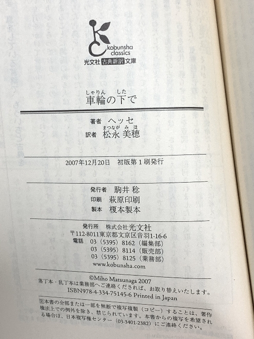 | 車輪の下で 光文社 ヘッセ | ||||