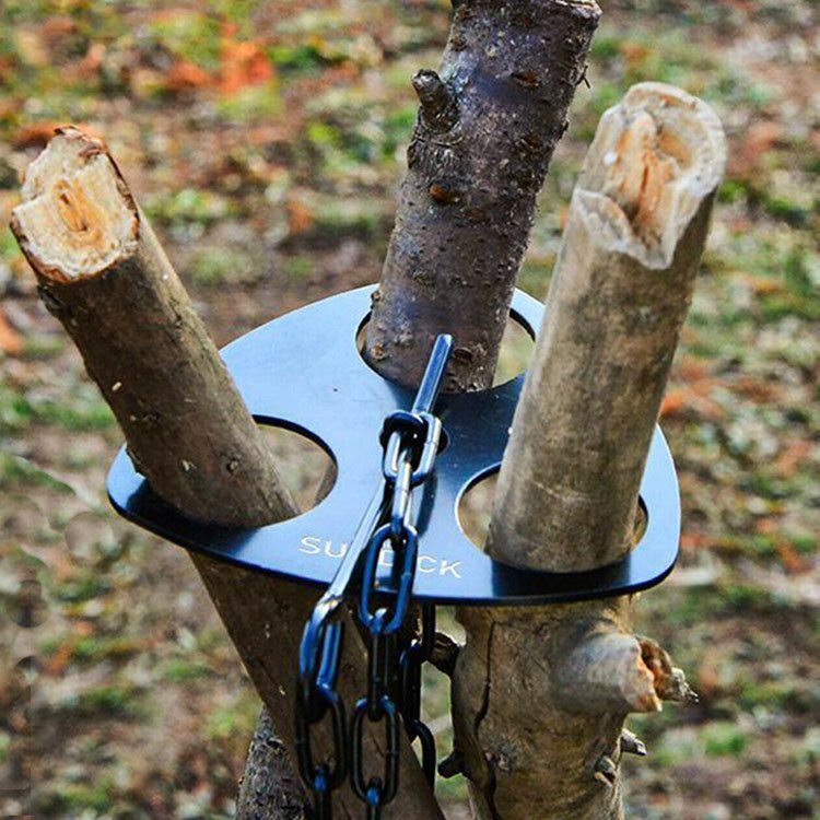 ◆トライポッドリング 枝や棒で三脚を作れます 3穴プレート チェーン付き 収納ケース付き 焚き火 キャンプ アウトドア ブッシュクラフト 調理 ステンレス 軽量 SDKTPR92S