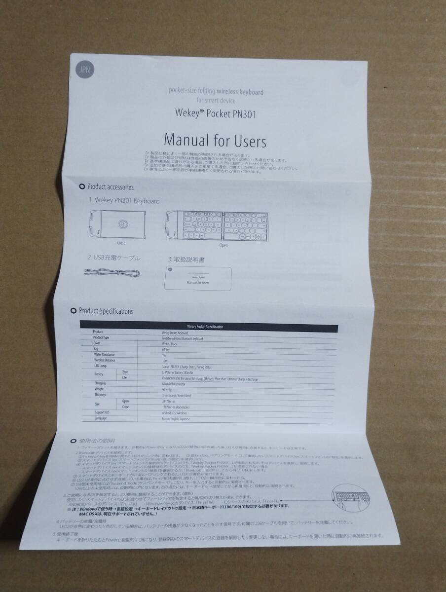 | サイズ | 閉じた状態:176 × 86 × 6mm / 開いた状態:310 × 86 × 3mm |