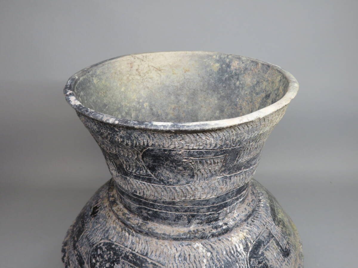 | 「都内コレクター所蔵品」タイ古陶磁 バンチェン土器 黒陶刻文壷 土器 ◆発掘品 彩文土器 彩陶壺 | ||