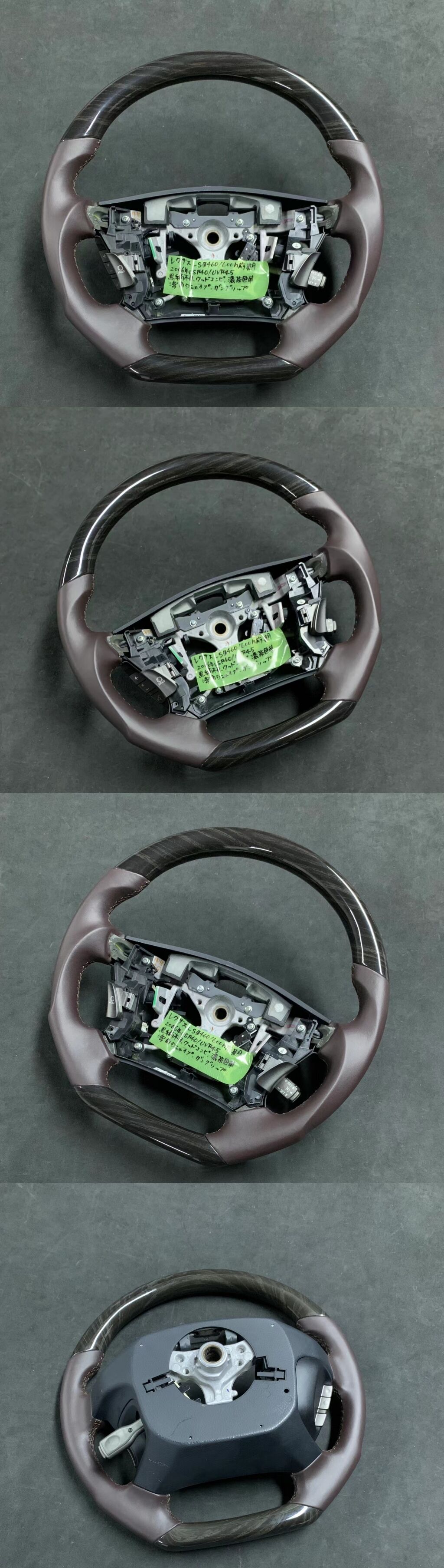 商品詳細 | ◆適合車種:パドルシフト付車 ◆本体履歴: LS460h前期2006年 USF40/UVF45より取出し ◆仕様:コブ付き/凸凹グリップホールド ◆仕様:Dシェイプガングリップ ◆純正ノーマル濃茶レザー張替え(本革)同色糸欧州縫い ◆天然ウッドコンビ加工/高級黒木目調 ◆多重層樹脂コーティング塗装/光沢艶あり ※エアバックやスイッチ類等は付きません。 (上記は現在のお客様のものをそのまま移設下さいませ) |