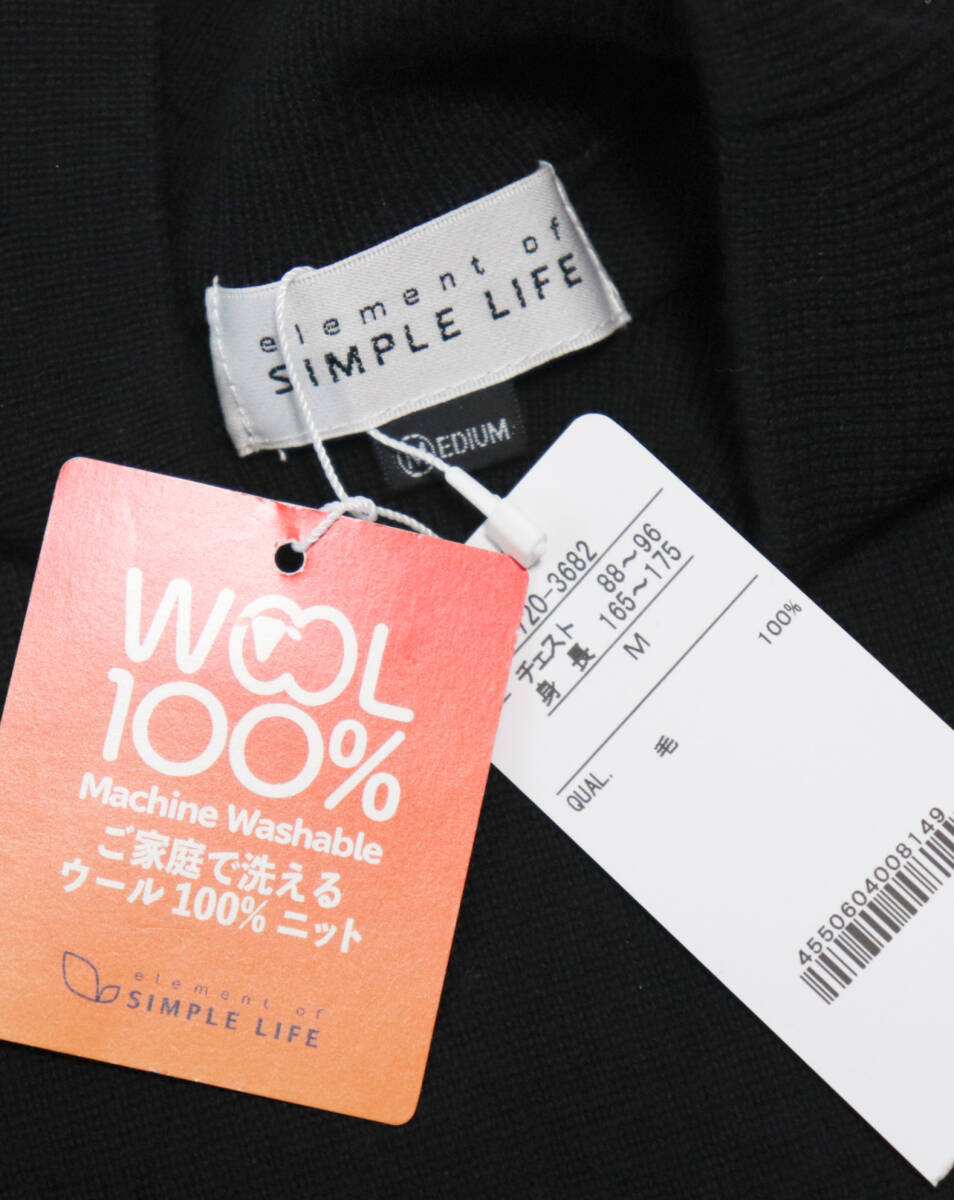 | 新品タグ付き【element of SIMPLE LIFE】ウォッシャブル 毛100% ハイネック ニット セーター 黒 M v5753 |