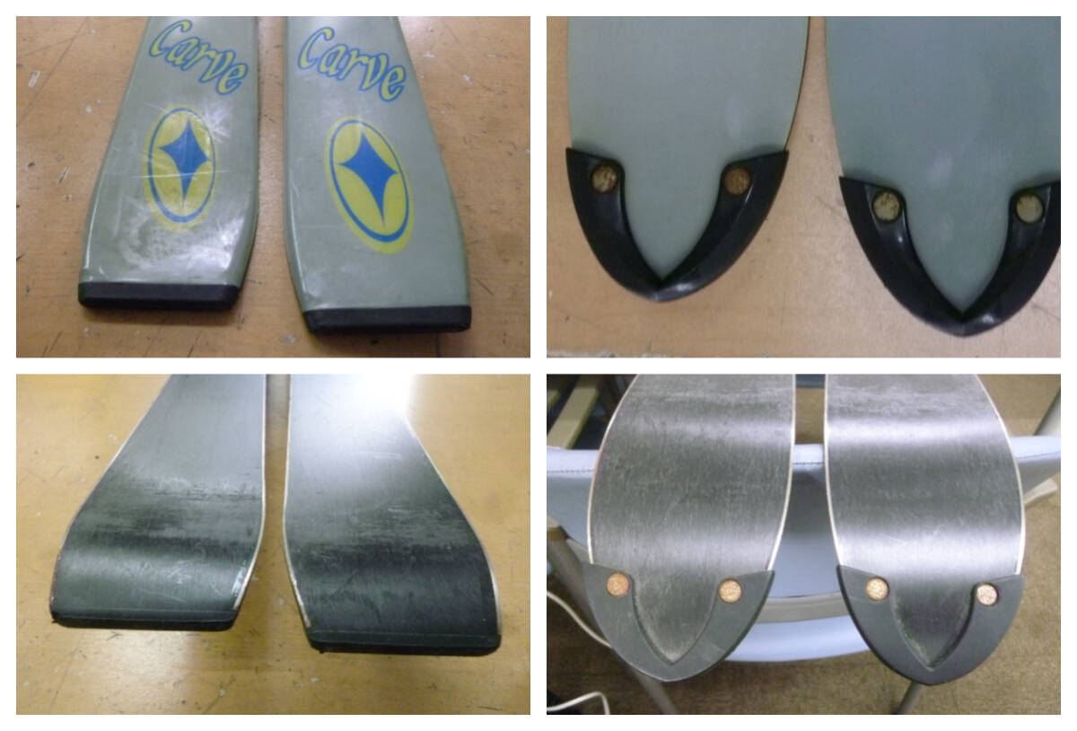 中古の商品になります。 全体に使用に伴うキズや汚れ、サビが多くあります 板表面、滑走面ともに線状のキズ汚れ多くございます エッジ部分ですが、サビ、キズなどがございます 側面も塗装の剥がれなどもございます。 裏側ワックス汚れもございます。