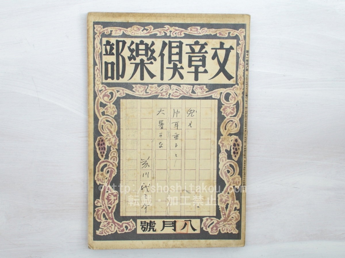 (雑誌)文章倶楽部 第12巻第2号 / ◯当店在庫から「」の本を探す| ★ 発送方法 (送料無料) ・日本郵便のゆうパケット・レターパックライト・レターパックプラス・ゆうパックの中から荷姿の大きさに適した方法で発送します。(発送方法や到着日時はご指定いただけません。) ・上記発送方法はすべて追跡番号付き・土日配送有・速達扱いです。ゆうメールや定形外は発送に使用いたしません。 ・ゆうパケット・レターパックライトは郵便受けにお届け、レターパックプラス・ゆうパックは配達員対面受取です。防水梱包します。 ★ 必ずお読みください ・代金決済後の次の火木土に発送します。 ・ストア出品です。ご注文時に必要事項のご記入・決済いただいた後は、やり取り不要です。商品の到着をお待ち下さい。 ・肉筆物・美術作品は真作保証いたします。 ・商品のレファレンス(調べ物)サービスは行っておりません。また当店商品以外の無料鑑定は行っておりません。 |