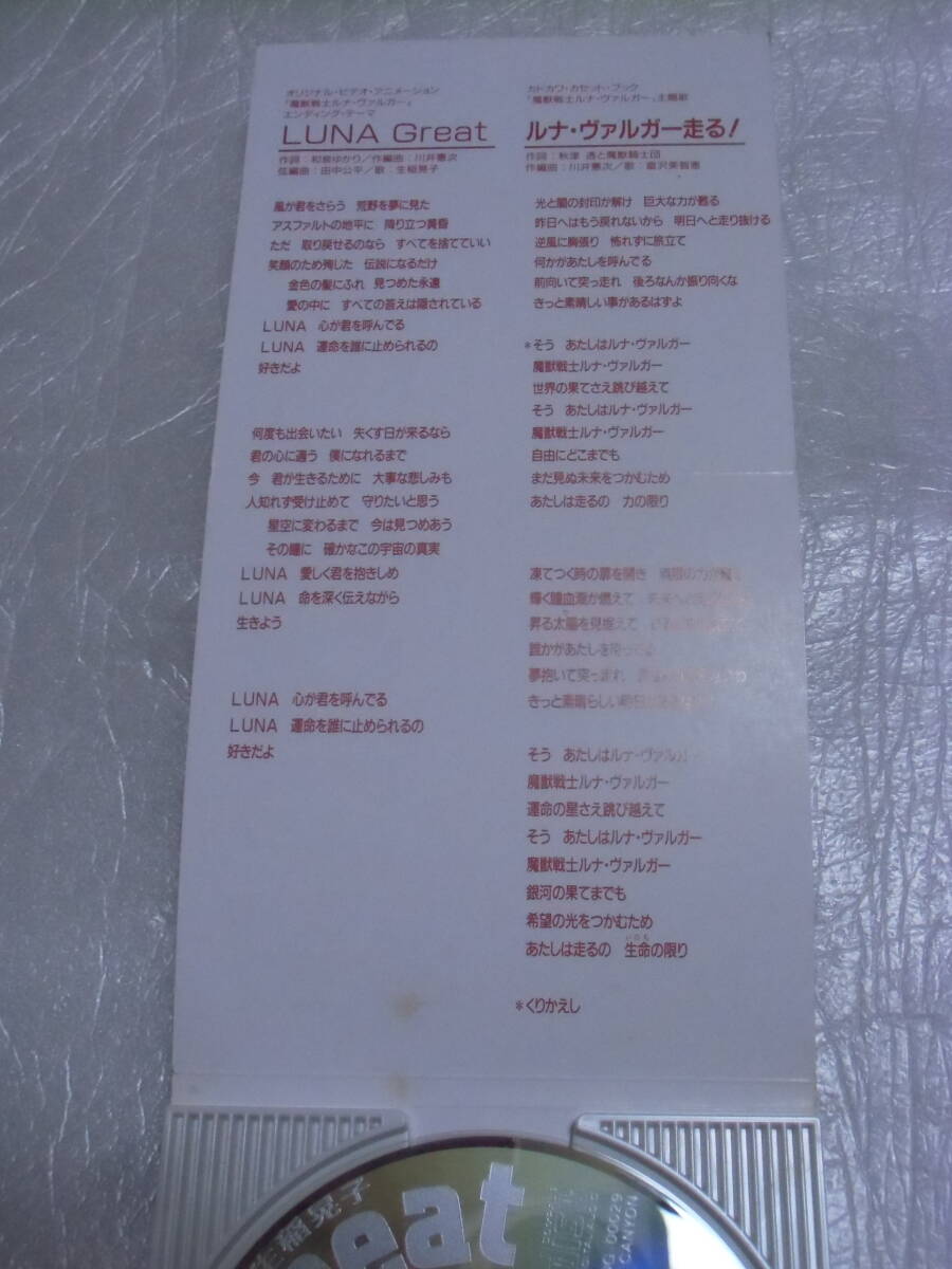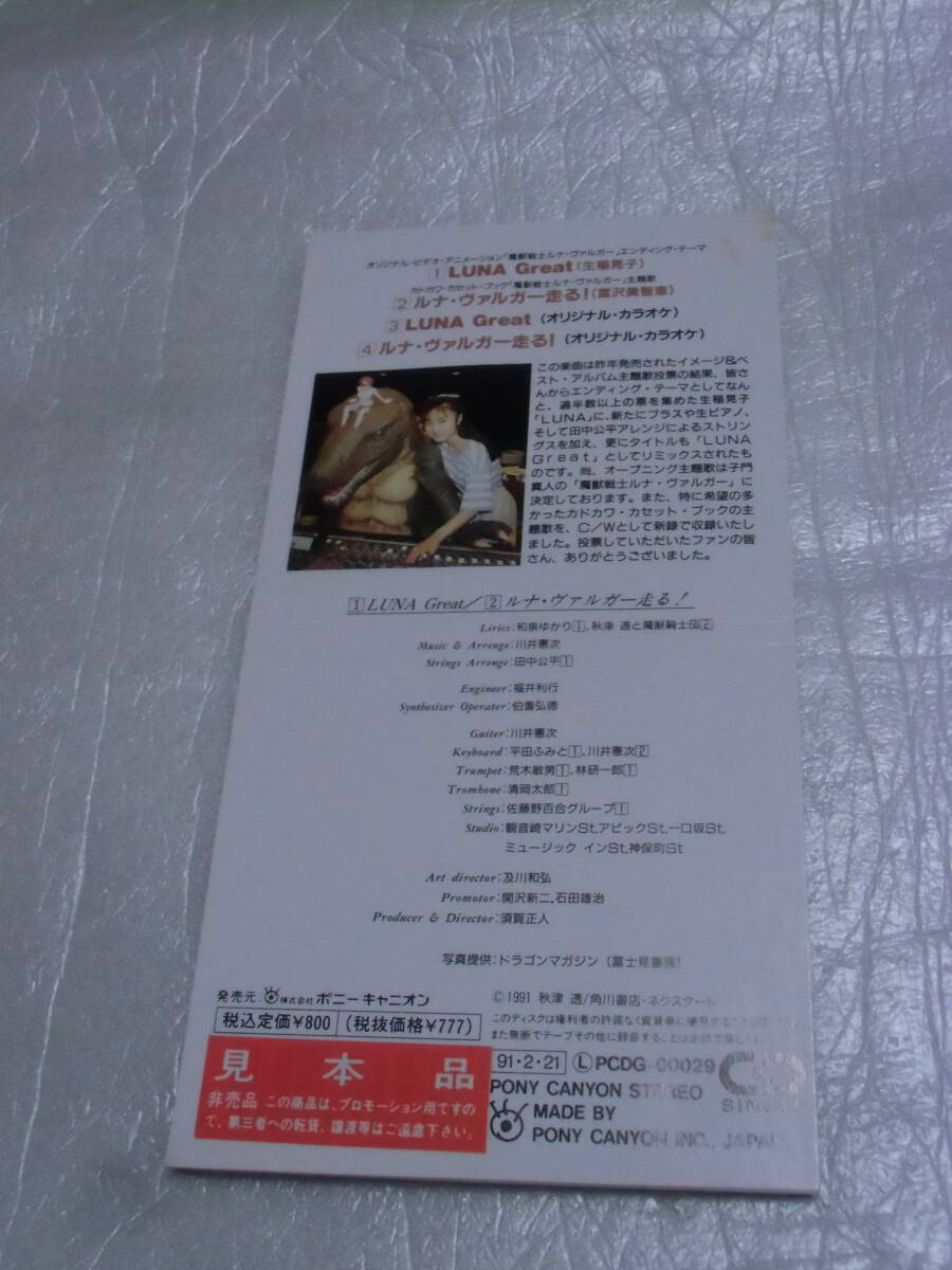 8cm CD シングル 生稲晃子 LUNA Great / 富沢美智恵 魔獣戦士ルナ・ヴァルガー OVA 主題歌・エンディングテーマ曲 見本品 1点を出品いたします。