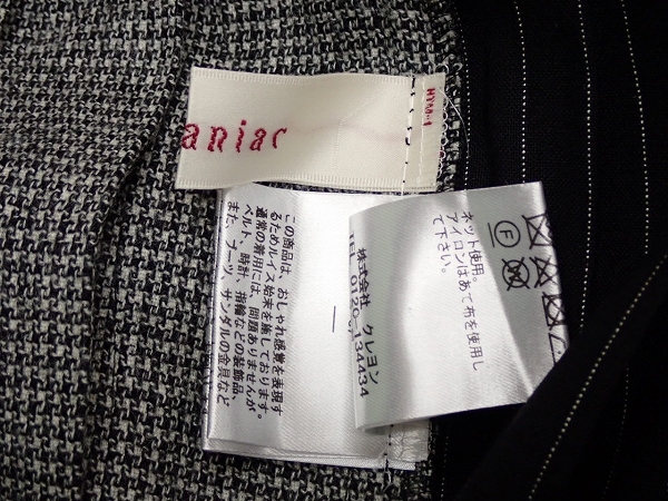 | 色 黒×グレー 素材 ウール100% ストライプ柄 レーヨン60% ウール38% ポリウレタン2% チドリ柄 ウール98% ナイロン1% ポリウレタン1% | |