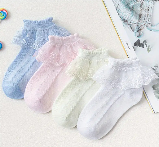 柔らかい編み物のレース付きキッズ靴下、カラフルな4色展開。