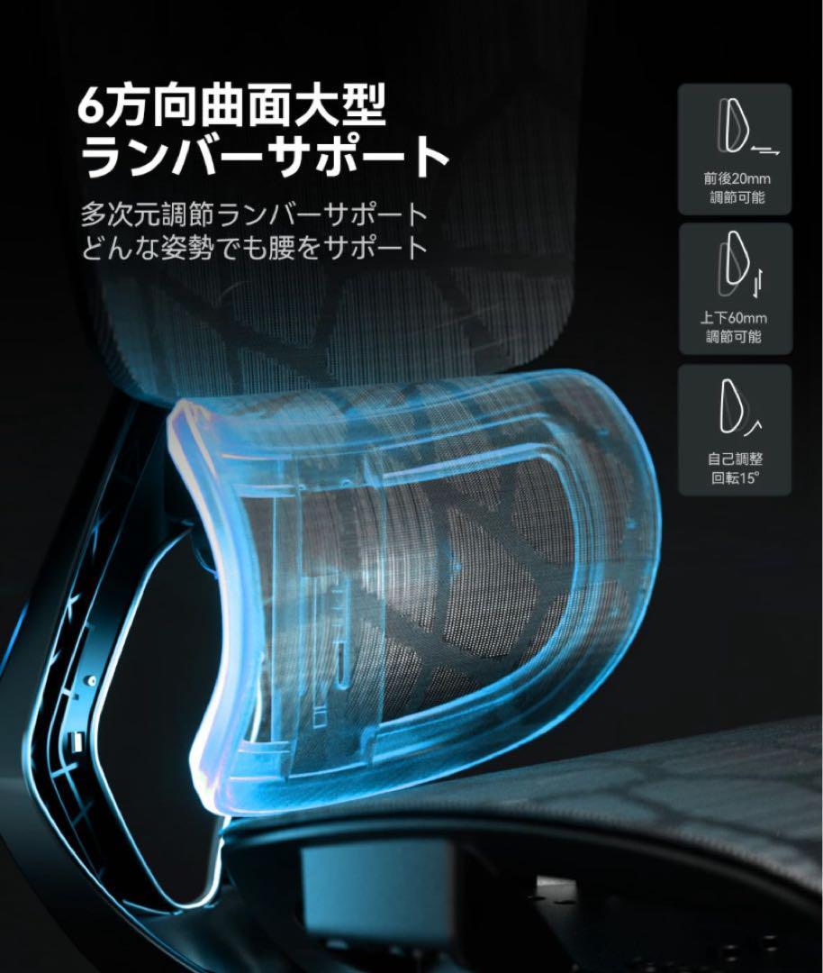 長時間作業でも快適!通気性の良いメッシュ素材&6Dランバーサポート