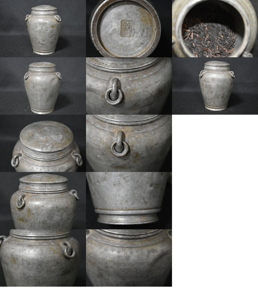 【光成】煎茶道具・古錫「御錫屋天下一美作守・斑紋・三鐶茶心壷」高さ13.2㎝