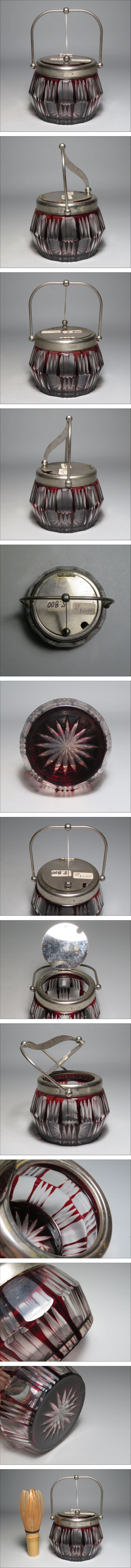 | 1円スタート~ 昭和レエロ 赤 ガラス シュガーポット 砂糖入れ グラス 切子 硝子 /昭和 明治 大正時 | ||