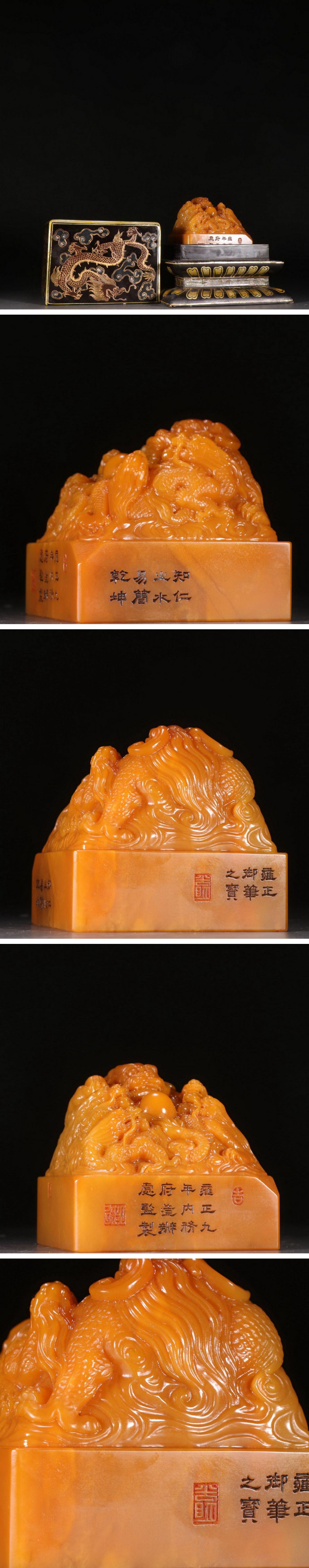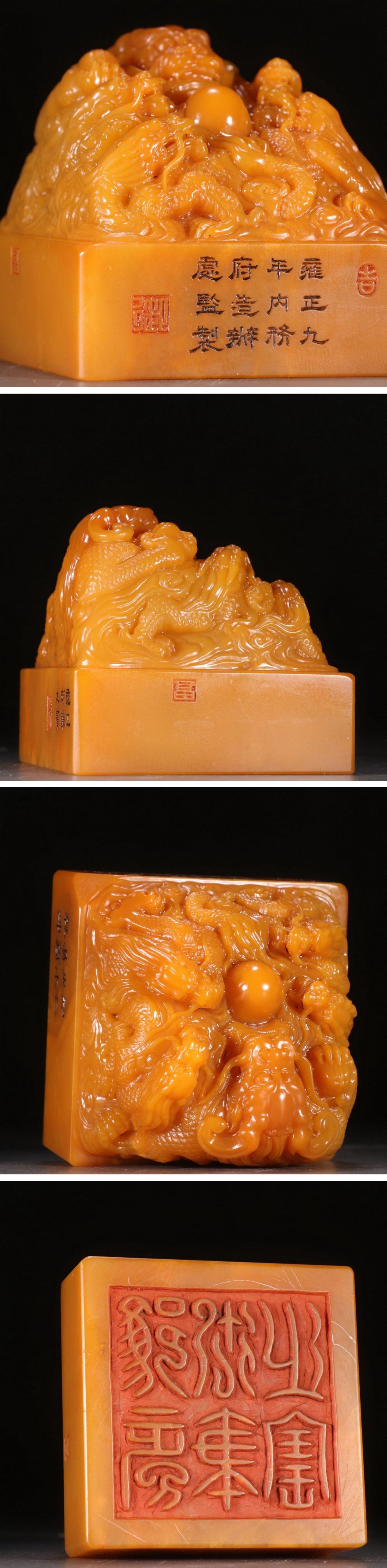 【清】某有名オークション購入 清時代 雍正九年内務府造 寿山田黄石五龍戯珠紋印章 古置物 古擺件 古美術 時代コレクション7L10-MD1
