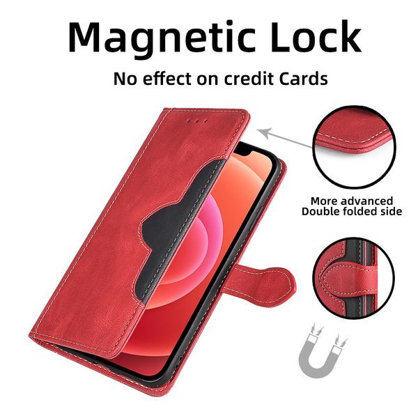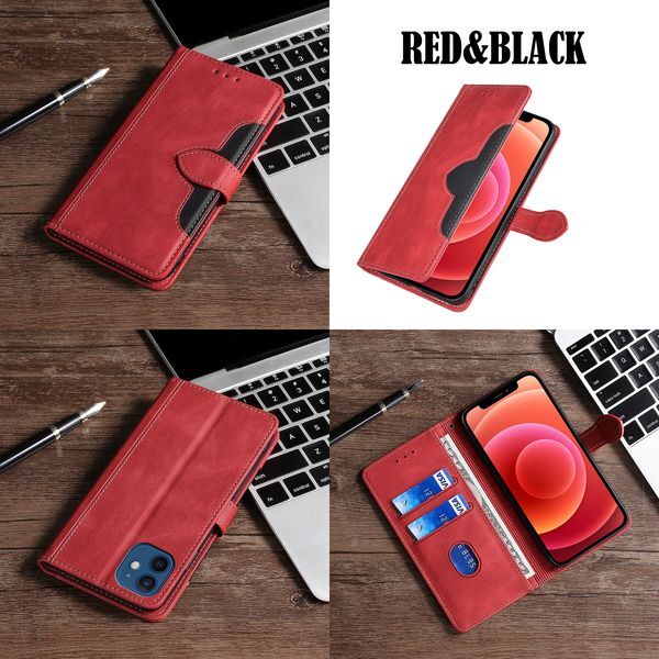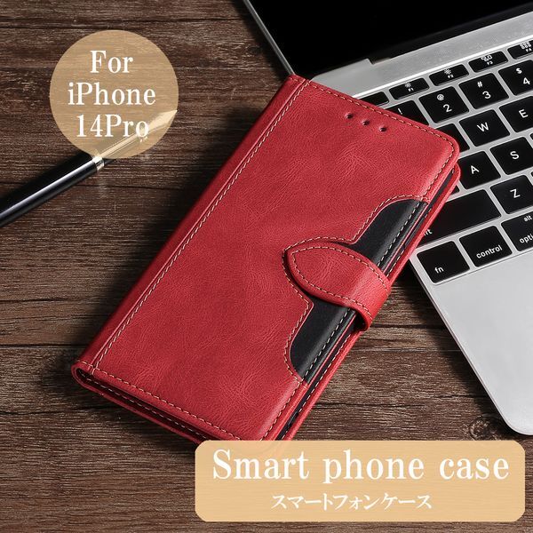 | 商品名 | iPhone 14Pro 用 スマホケース 新品 手帳型 レザー 耐衝撃 アイフォン カード収納 携帯ケース TPU ツートンカラー ベルト スマホカバー レッド&ブラック |