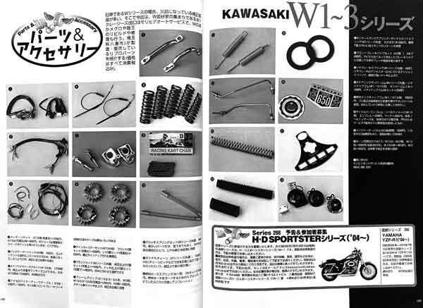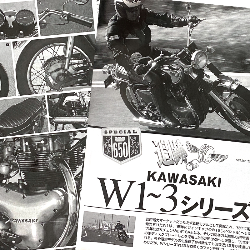 「カワサキ W1~W3シリーズ」特集14ページ掲載された雑誌です。 …………………………… ---●試乗解説 ~鉄の温もりが感じられるエンジンが心地よい、古き良き時代の遺産の一つ ---●ショートヒストリー ~30~40年経った今日でもp非常に高い現存数を誇る稀有な名車 ---●詳細写真解説 ---●オーナー座談会 ~若い頃から好きだった ~低回転でゆっくりが楽しい ~サウンドは微妙に異なる ~部品造りが良い ~左チェンジは問題ない ~リプロ部品があるから心強い ---●ショップの証言 ~排気音とトルク感が醍醐味 ---●パーツ&アクセサリー ---●W1S主要諸元表 サービスデータ …………………………… ○20年以上前のバイク雑誌MC別冊、一冊の出品です。 ○ 細かい発行年などの質問はご容赦ください。 ○ 程度は多少のスレがありますが大きな傷み等はありません。 よろしくお願いいたします。328c 251109 |