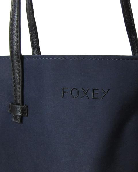 | 紺の上品なトートバッグ。フォクシーの人気ノベルティ。A4サイズが入る大きさで、お子様のお受験時のサブバッグなどでいかがでしょうか。 |