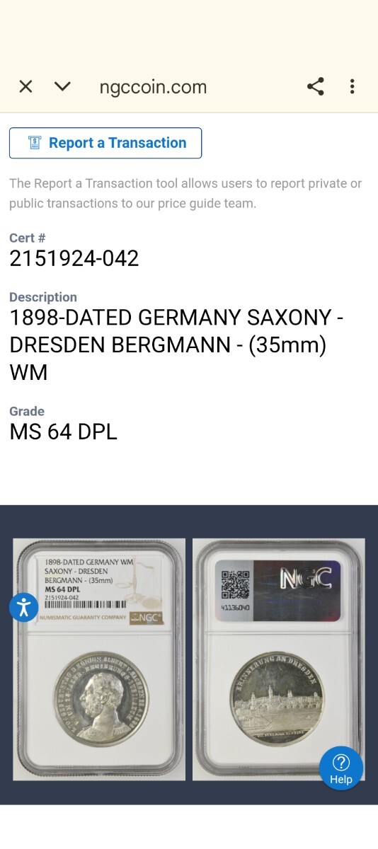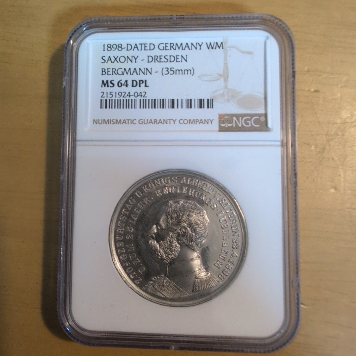 1898年 ドイツ ザクセン王国 アルベルト ドレスデン都市景観 ホワイトメタルメダル NGC MS64 ディーププルーフライク [浏览原始页面]