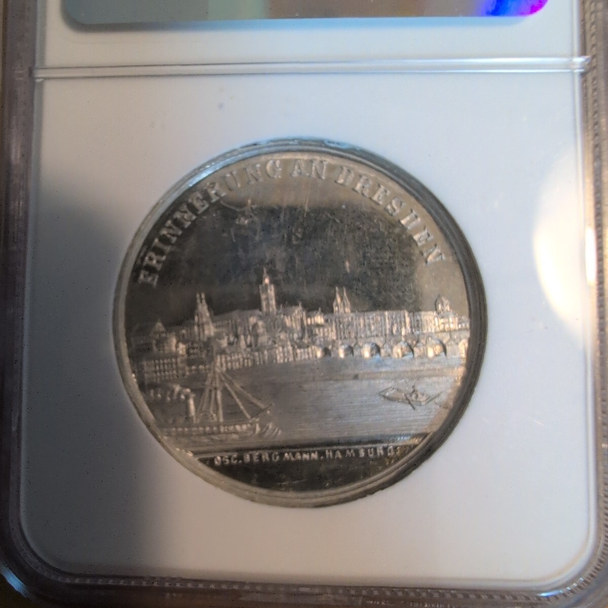 1898年 ドイツ ザクセン王国 アルベルト ドレスデン都市景観 ホワイトメタルメダル NGC MS64 ディーププルーフライク