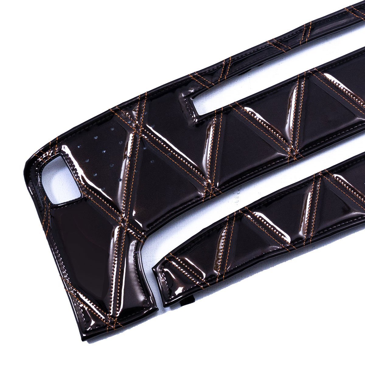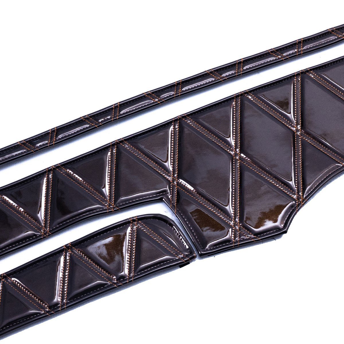 | 【 ここがポイント 】 ★光沢のあるエナメル調PVCレザーで車内イメージを一新、鮮やかなカラーでインテリアを演出します。 ★設定カラーは、「ブラック」、「ブラウン」、「ブルー」、「レッド」、「ワイン」、「ネイビー」、「パープル」、「グリーン」、「イエロー」の全9色。国内生産・車種専用の設定です。愛車のトータル・ドレスアップをお楽しみ下さい。