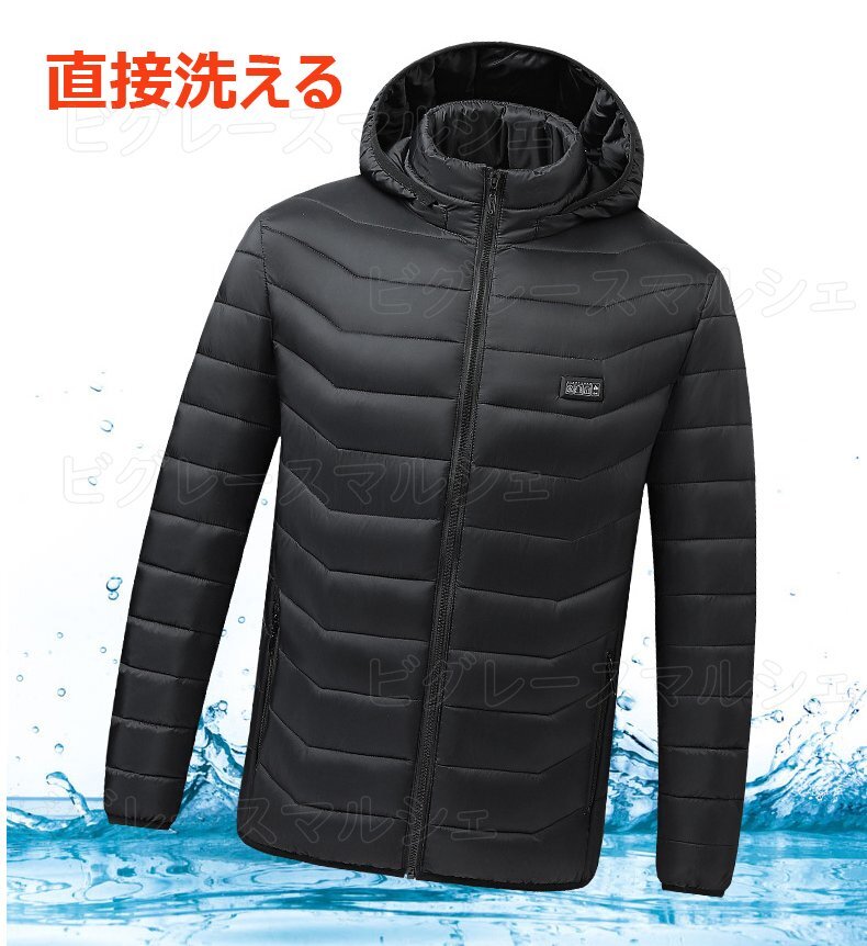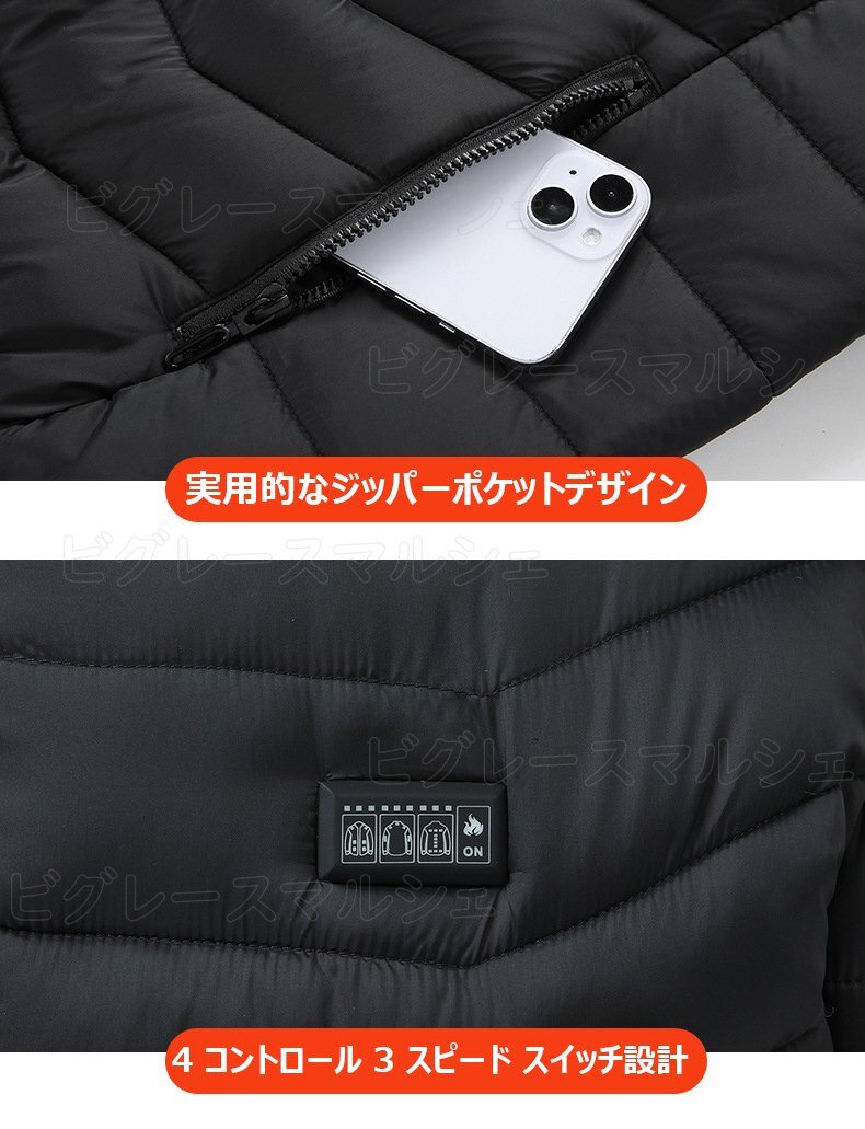 ■【時短速暖ヒーター 丸洗い可能】しなやかな日本製グラフェン繊維ヒーターを採用し、電源を入れた後、約5秒ぐらい発熱開始、1分間ほど暖かさが広がります。中身にはふんわりした柔らかい中綿入り、もこもこしていて防寒性に優れ、ヒーターとの組み合わせで熱を逃さず、しっかり暖かさをキープしてくれて、寒い外を歩いても体がポカポカ。バッテリー電量がなくなっても、ただの中綿入りベストとして普通に着ていても暖かいです。汚れたら、バッテリーを外して、手洗いや洗濯機で丸洗いできます。