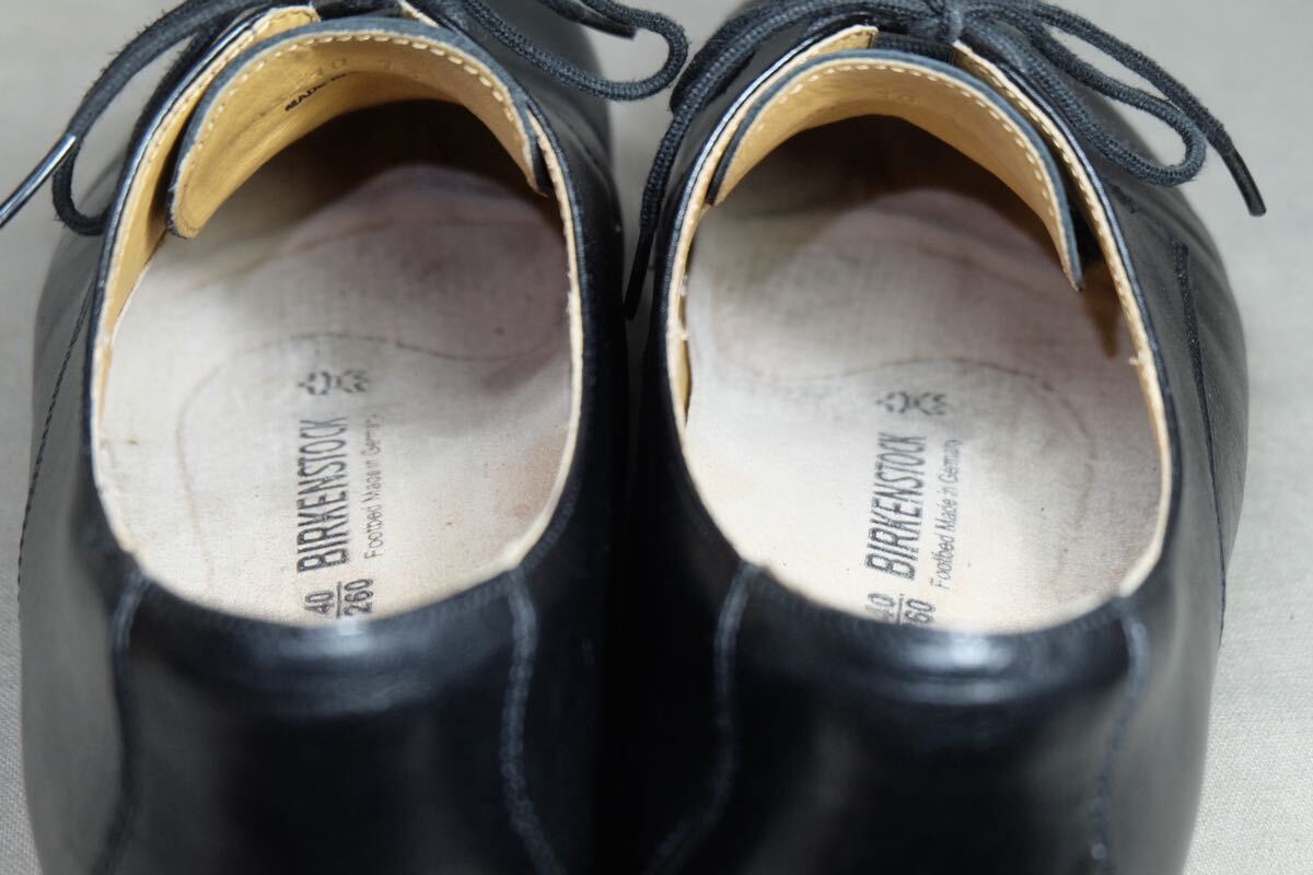 数回着BIRKENSTOCK ビルケンシュトック 極上カーフレザー使用 プレーントゥダービーシューズ UK40 ドイツ 高級革靴 ブラック 整形靴 オプリックトゥ ポルトガル製 ラバーソール メンテナンス&クリーニング済み | |||