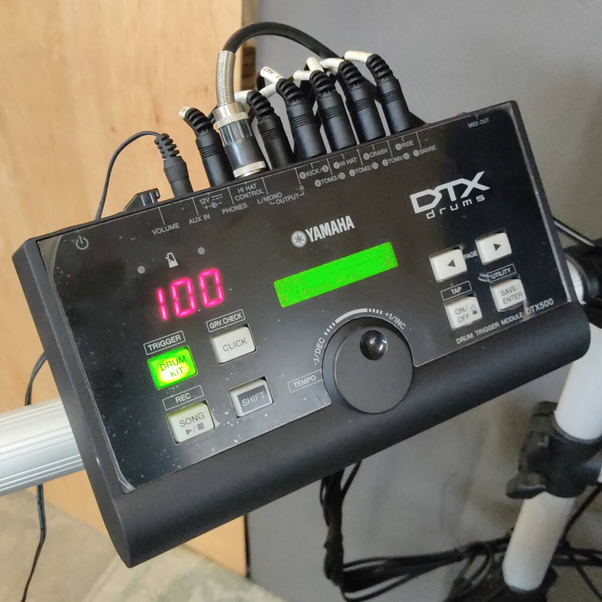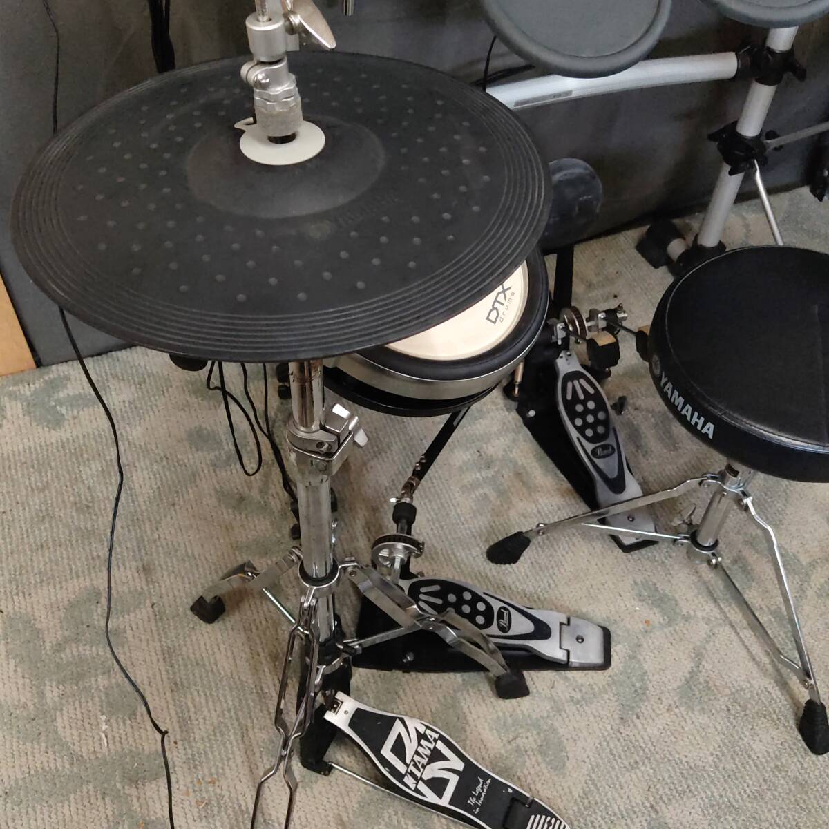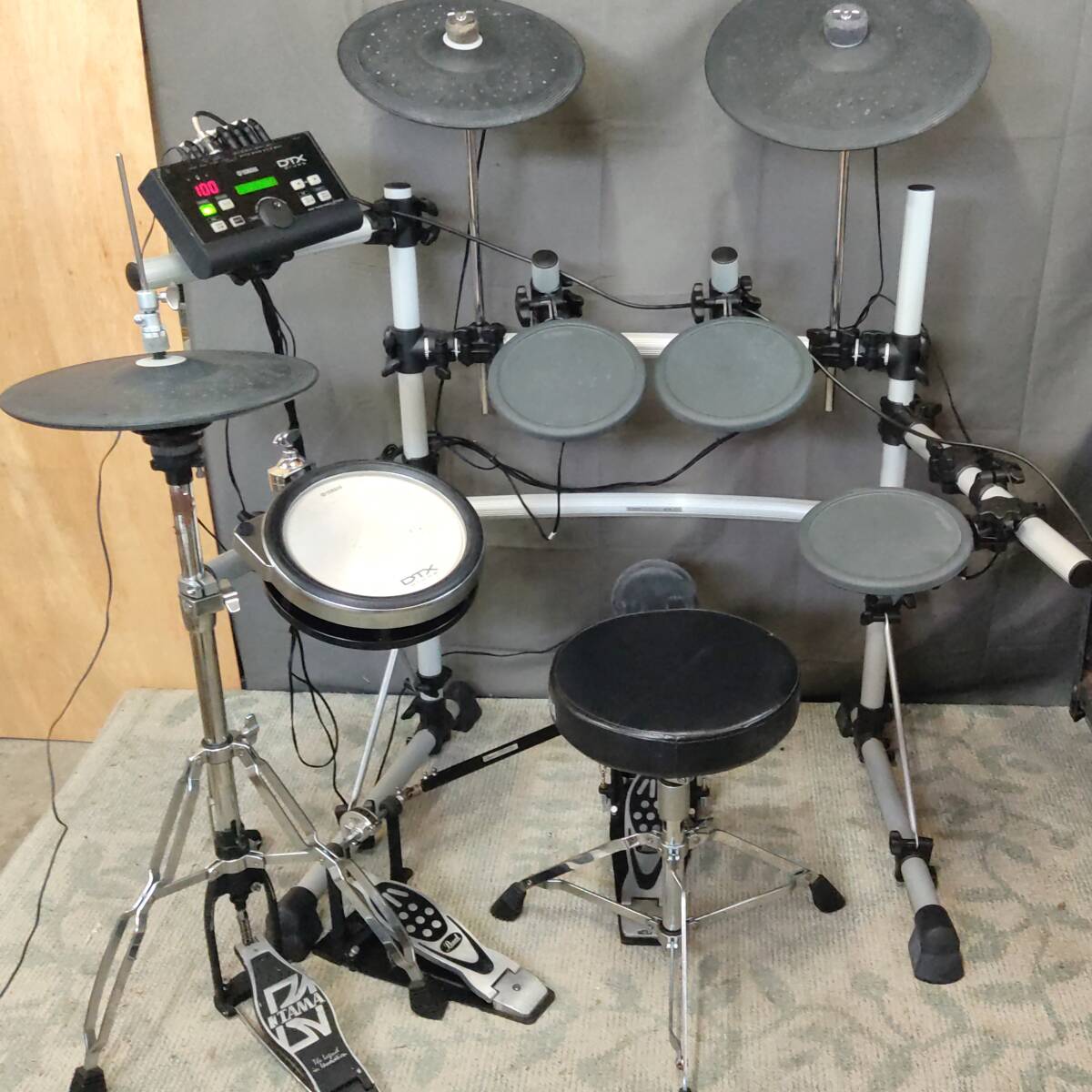 電子ドラム一式 メーカー:YAMAHA/他 型番:DTX550K/他(下記詳細) ・DTX550Kセット内品 モジュール:DTX500 ラックシステム:RS85A スネアパッド:XP100SD ハイハットパッド:RHH135 タムパッド3点:TP65 シンバルパッド:PCY135/PCY155 キックパッド:KP65 パッド接続用ケーブル AC電源ケーブル ・DTX550Kセット以外の品 ハイハットスタンド:TAMA/THE LEGEND IN INNOVATION フットペダル:Pearl製ツインペダル チューニングキー:Pearl製 椅子:YAMAHA製スローン モジュールDTX500の仕様は画像2枚目をご参照ください。 DTX550Kの商品概要ページ(取扱説明書)はコチラ↓ https://jp.yamaha.com/products/musical_instruments/drums/el_drums/drum_kits/dtx550k/index.html | |