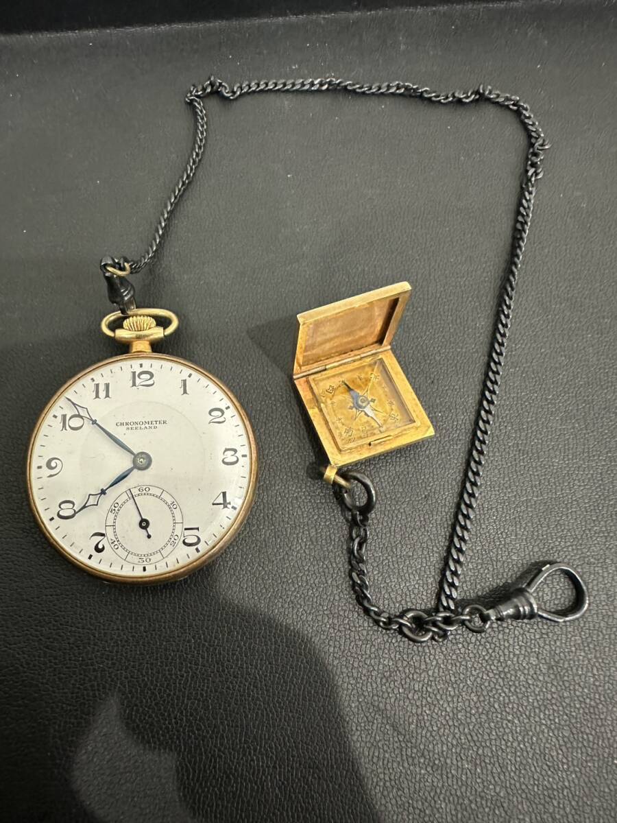 | 稼働品 SEELAND CHRONOMETER 方位磁石付き 手巻き 懐中時計 18K 金無垢 総重量47.23 骨董品 貴重 金無垢時計 腕時計 遺品整理 レア |