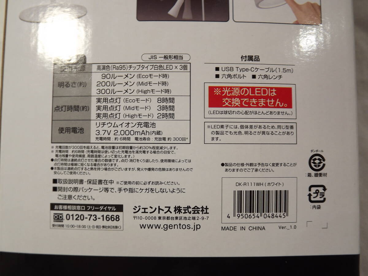 | GENTOS ジェントス LED デスクライト 充電式 DK-R111WH | |