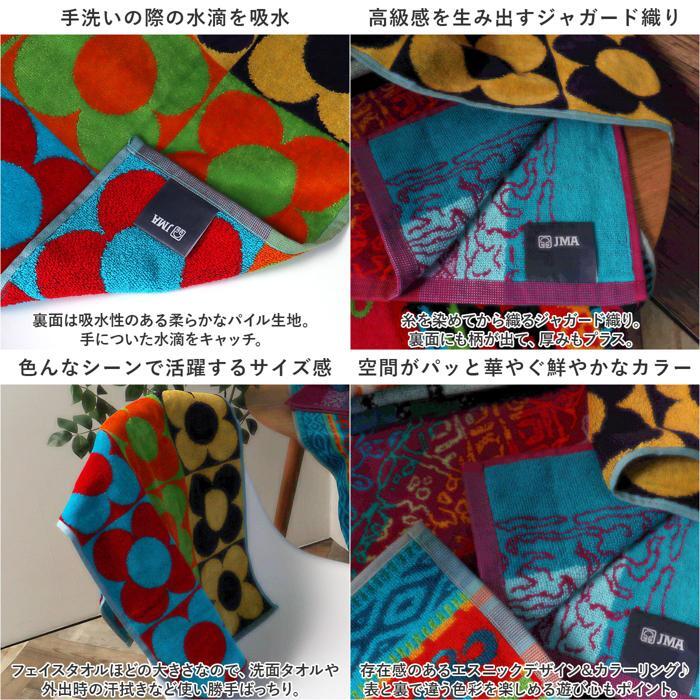 | 商品説明 | ・・世界中で愛されている、ポルトガルの人気ブランド「JMA」のハンドタオルが新登場。 ・【お肌を優しく包み込む綿100%素材】 ・ふっくら優しい綿100%ハンドタオル。パイルの先端をカットするシャーリング加工を施すことで密度が高く、肌触りが滑らかに。 ・【手洗いの際の水滴を吸水】 ・裏面は吸水性のある柔らかなパイル生地。手についた水滴をキャッチ。 ・【高級感を生み出すジャガード織り】 ・糸を染めてから織るジャガード織り。裏面にも柄が出て、厚みもプラス。 ・【色んなシーンで活躍するサイズ感】 ・フェイスタオルほどの大きさなので、洗面タオルや外出時の汗拭きなど使い勝手ばっちり。 ・【空間がパッと華やぐ鮮やかなカラー】 ・存在感のあるエスニックデザイン&カラーリング♪表と裏で違う色彩を楽しめる遊び心もポイント。 |
