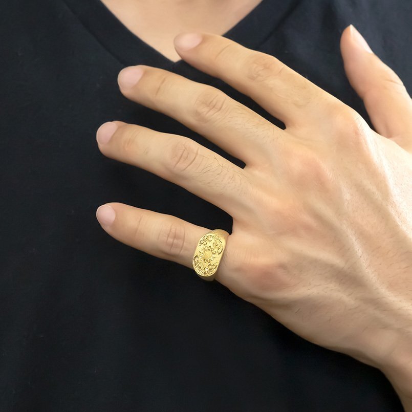 商品コード:210527101yim【配送】・発送は3週間ほどです【おすすめポイント】キラキラと輝くテクスチャと彫りの調和が美しい印台風ボリュームリングヒマワリの明るくポジティブな印象が爽やかさと個性をアピール頑張っている自分へのご褒美や、大切な人へのプレゼントにおススメ【商品詳細】・材質:イエローゴールドk10(品質を保証するk10の刻印)・大きさ:リング最大幅 約 10.5ミリ【リングサイズ】・10-16号までサービス それ以上のサイズは別途お値段がプラスされます。・0.5号刻みも対応しておりますので、ご希望の場合はご要望欄にご記載ください。誕生日 記念日 プレゼント ジュエリー リング 指輪 幅広 印台 シグネットリング ひまわり 向日葵 花 彫り ピンキーリング 地金 ブライダルリング エンゲージリング 婚約指輪 マリッジ 結婚 婚約 ウェディング プロポーズ 結婚祝い ジェンダーレス ハンドメイドジュエリー ギフト プレゼント 贈り物 フリースタイル ニッケルフリー ユニセックス LGBTQ 男女兼用 ジェンダーフルイド バディジュエリー 小さいサイズ 大きいサイズ 対応 福袋 30代 40代 50代