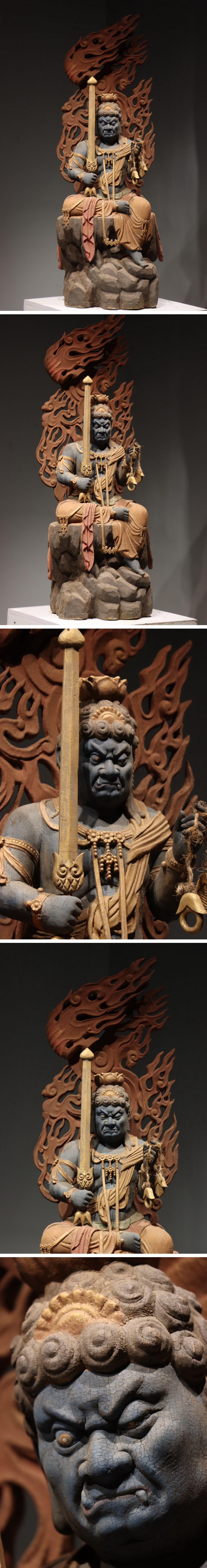 【清】某有名オークション購入 倣古佛 楠木色絵 巨大不動明王造像 大量注文可能 古置物 古擺件 古美術 時代コレクション7L9-HU