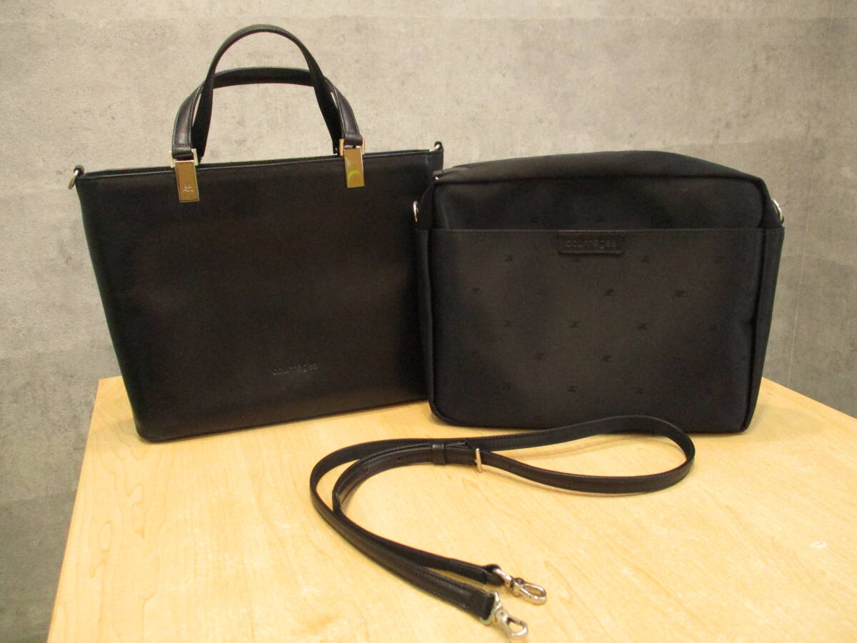 Courregesバック クレージュ レディース バッグインポーチ ハンドバッグ ショルダーバック ブラック 無地 USED品 箱無し |