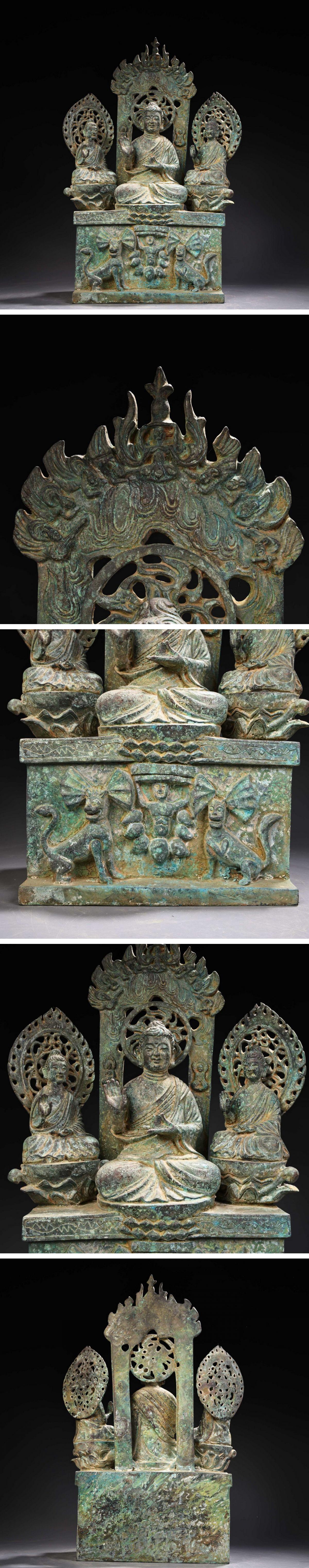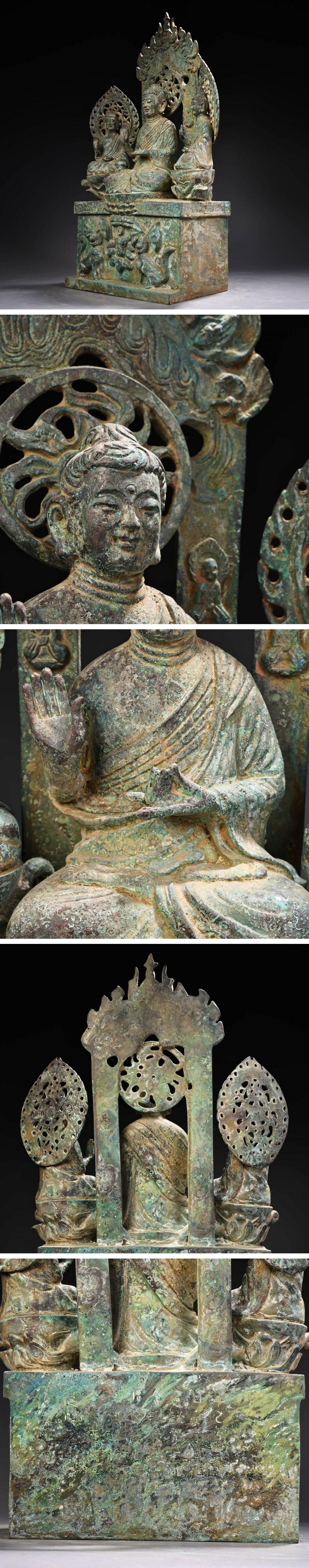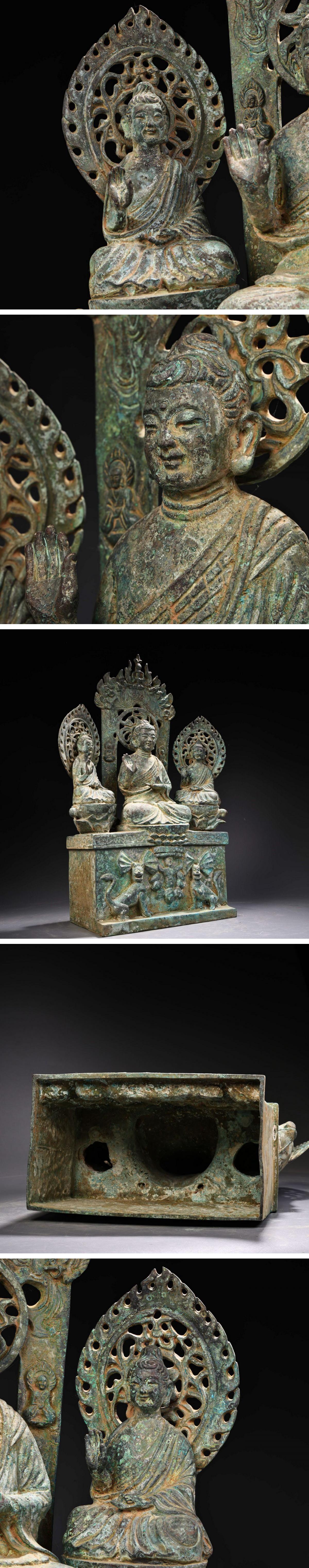 【清】某有名オークション購入 北斉時代 青銅器 釈迦三尊造像 材質保証 当時物保証 古置物 古擺件 古美術 時代コレクション7L10-NN5