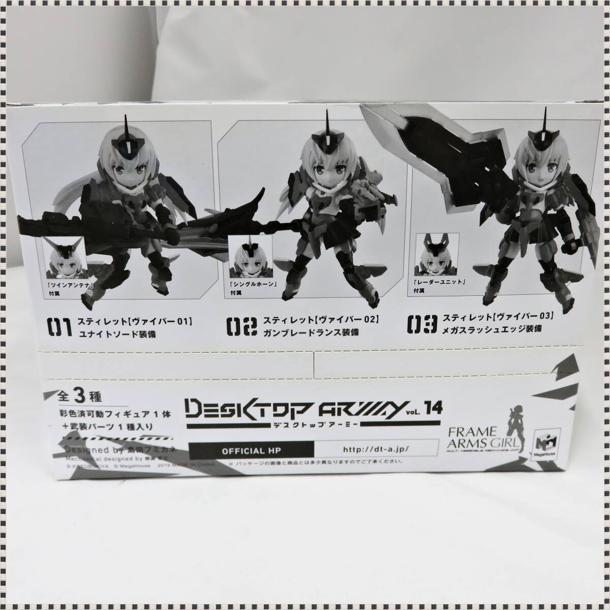 ★問い合わせ等の対応、発送は平日のみ行います。 写真に写っているものが全てです。 BOX未開封品です。 【セット内容】 01.スティレット[ヴァイパー01]ユナイトソード装備+おすまし顔(ツインアンテナ) 02.スティレット[ヴァイパー02]ガンブレードランス装備+にっこり顔(シングルホーン) 03.スティレット[ヴァイパー03]メガスラッシュエッジ装備+笑顔(レーダーユニット) 他の出品商品で、同一日に終了する商品に限り同梱が可能です。 落札後、取引ナビからその旨をお申付下さい。 ご連絡いただけない場合、単独での発送となります。 即決や早期終了、取り置きには対応できません。 手渡しや記載以外の発送方法への変更は承れません。 ほか、状態等は画像にてご確認ください。 ご不明な点は入札前にご質問ください。 【 ご入札される前に必ずお読み下さい】 ※「新規アカウントの方」・「評価が5件未満の方」の入札は原則お断りしております。(いたずら入札/トラブル防止の為) 善意の入札希望の方は、入札前に質問欄より「入札のご意思」をお知らせください。 事前にお知らせなくご入札頂いた場合には、予告無しに「入札・落札制限」させて頂きます。 (弊社管理システムが自動で「ブラックリスト登録」を実施する場合もございます) ※「良い評価の割合が90%以下方」の入札はお断りしております。(いたずら入札/トラブル防止の為) 入札及び落札がありました場合は、予告無しに「入札・落札制限」及び「落札者都合による削除対応」をさせていただく場合がございますので予めご了承下さいませ。 ※当出品物は「評価不要」のご要望にはお応え出来ませんので予めご了承下さいませ。 ※恐れ入りますが、オークション終了日にご質問を頂いてもお答えすることが出来ない場合がございます。 |