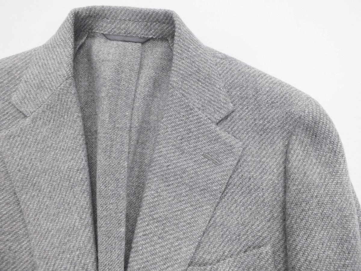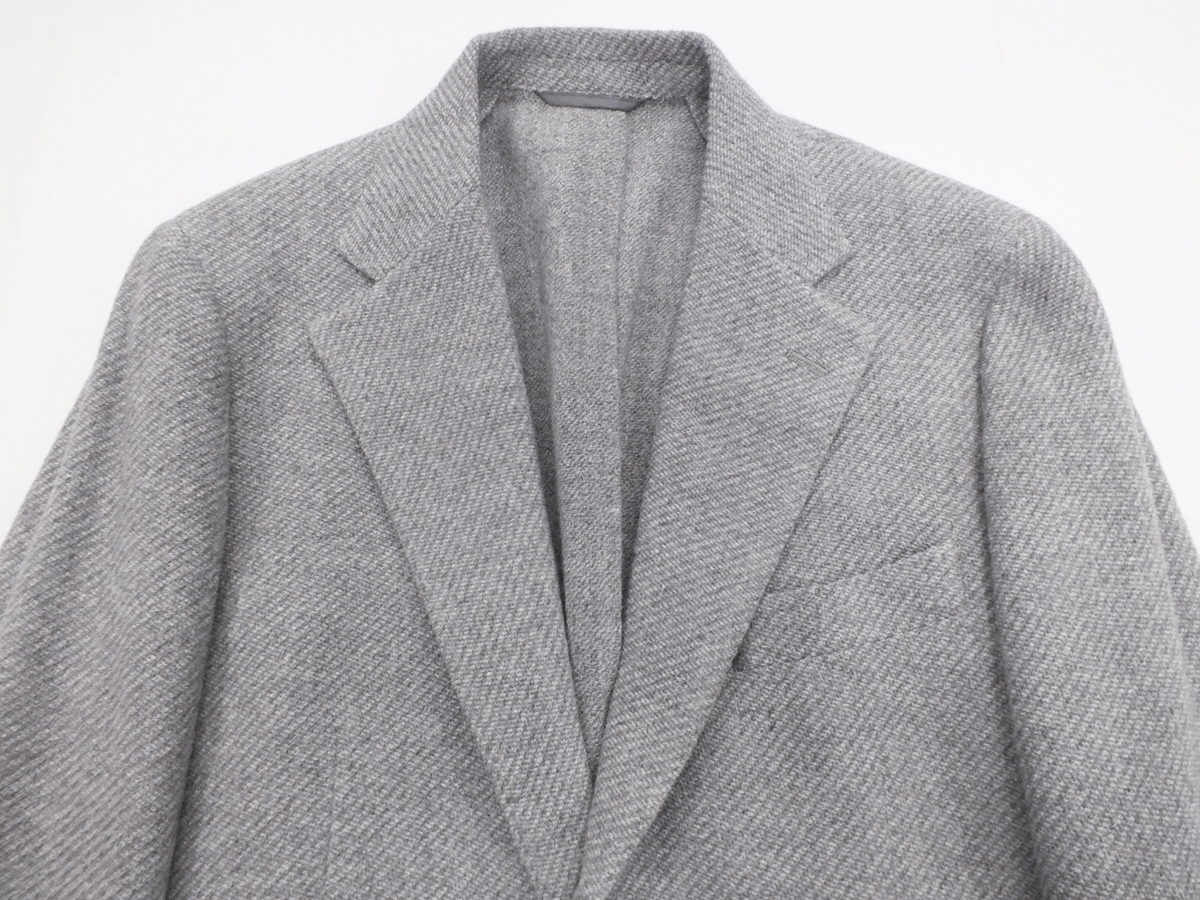 特色 ・薄くて軽い肩パット ・一枚仕立て ・イタリア製高級素材使用 アイテム:3ボタン段返りジャケット サイズ:LL(A7)【胸囲96㎝ー胴囲84㎝ー身長180㎝】 上着ベンツ:サイドベンツ 上着胴裏:一枚仕立て 袖釦:4個(重ねボタン) 色:グレージュ系 柄:ダイヤゴナル 表素材:毛77/ナイロン22/ポリエステル1 (イタリア製) 胴裏素材:ポリエステル100 袖裏素材:キュプラー100 縫製:中国 詳細な寸法 S(A4)【胸囲90㎝ー胴囲78㎝ー身長165㎝】 胸囲88cm/胴廻り86cm/上着丈68cm/肩幅43.3cm/袖丈58cm M(A5)【胸囲92㎝ー胴囲80㎝ー身長170㎝】 胸囲92cm/胴廻り88cm/上着丈70cm/肩幅44cm/袖丈59.5cm L(A6)【胸囲94㎝ー胴囲82㎝ー身長175㎝】 胸囲94cm/胴廻り90cm/上着丈72cm/肩幅44.7cm/袖丈61cm LL(A7)【胸囲96㎝ー胴囲84㎝ー身長180㎝】 胸囲96cm/胴廻り92cm/上着丈74cm/肩幅45.4cm/袖丈62.5cm 3L(A8)【胸囲98㎝ー胴囲86㎝ー身長185㎝】 胸囲98cm/胴廻り94cm/上着丈76cm/肩幅46.1cm/袖丈64cm | ||||