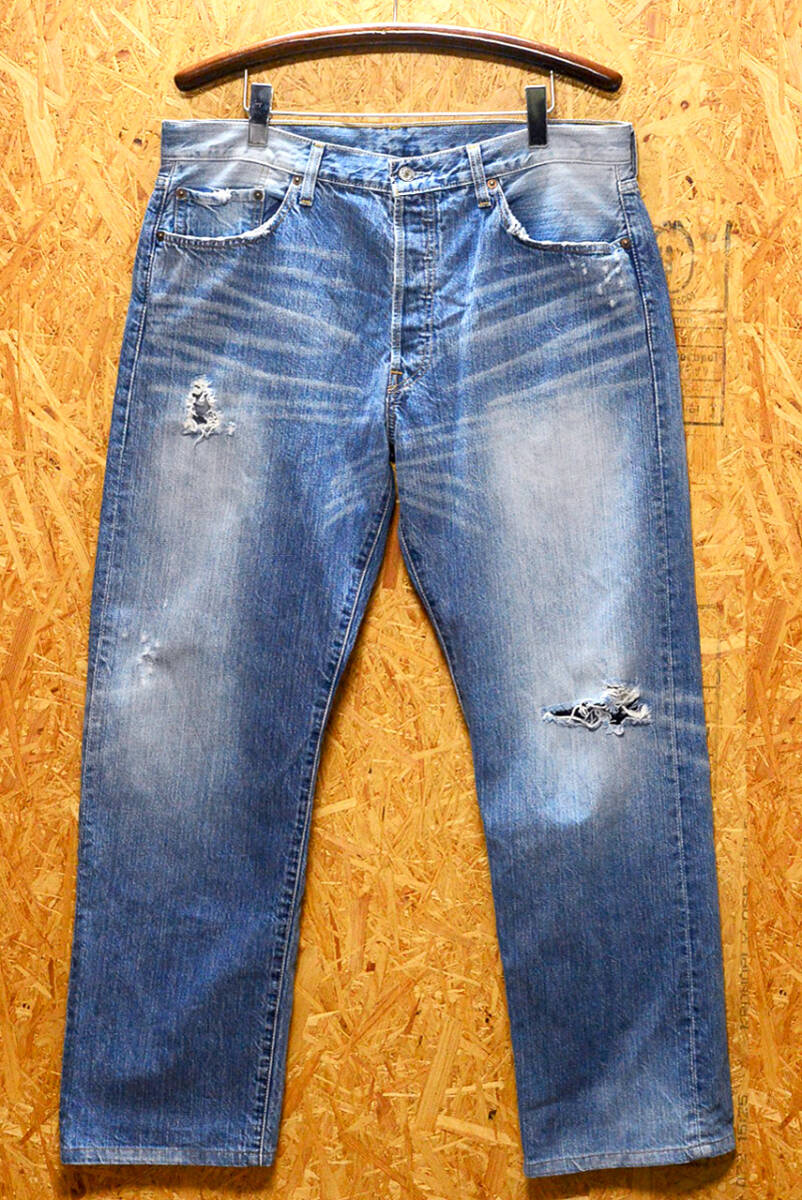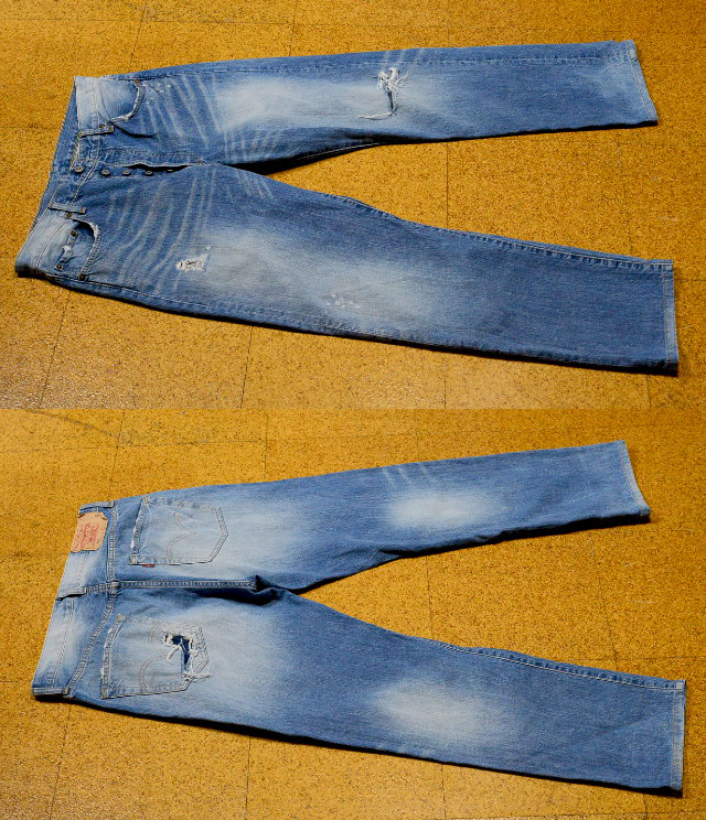生産された03501は一本一本が違う箇所に手作業による色落ち加工やダメージ加工が施されています。