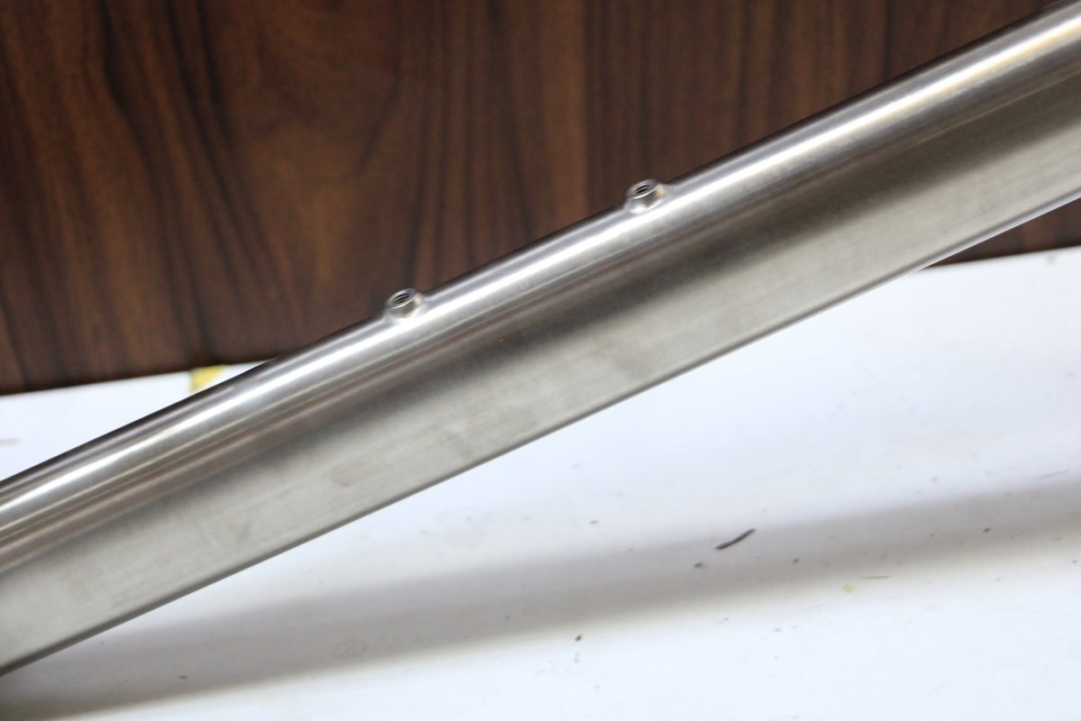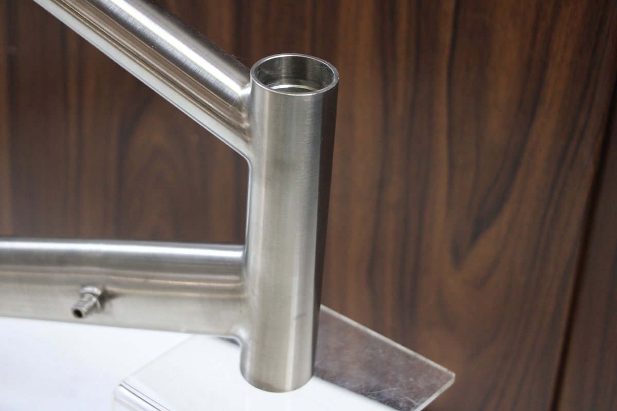 | 外観補足 | ロゴ無し無塗装のチタンフレームです。 試作品の類と思われ、車体番号の刻印もありません。 商品内容は写真現品です。フォークやヘッドセット、シートクランプは付属しません。 機械式専用です。 販売証明書を発行致します。 ※お送り先とご希望名義が異なる場合はオーダーフォーム備考欄に明記して下さい。 ※詳しくは画像をご覧くださいませ。 |